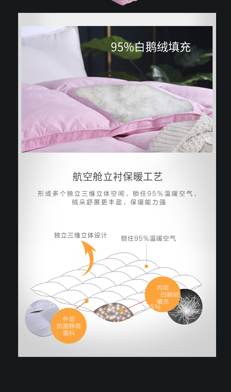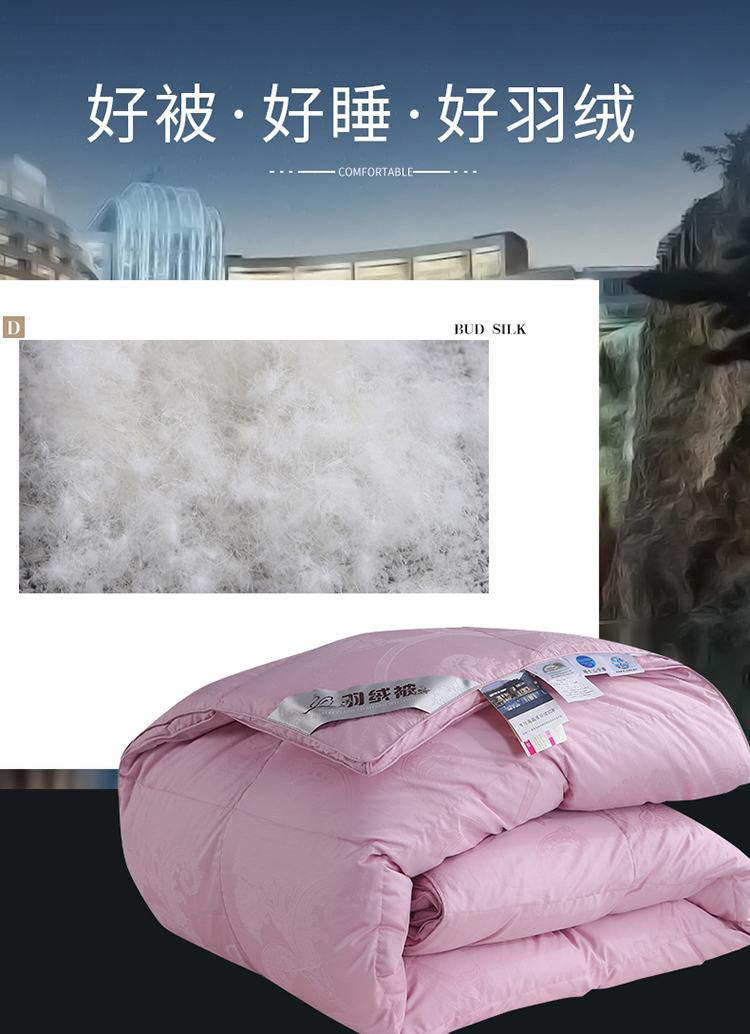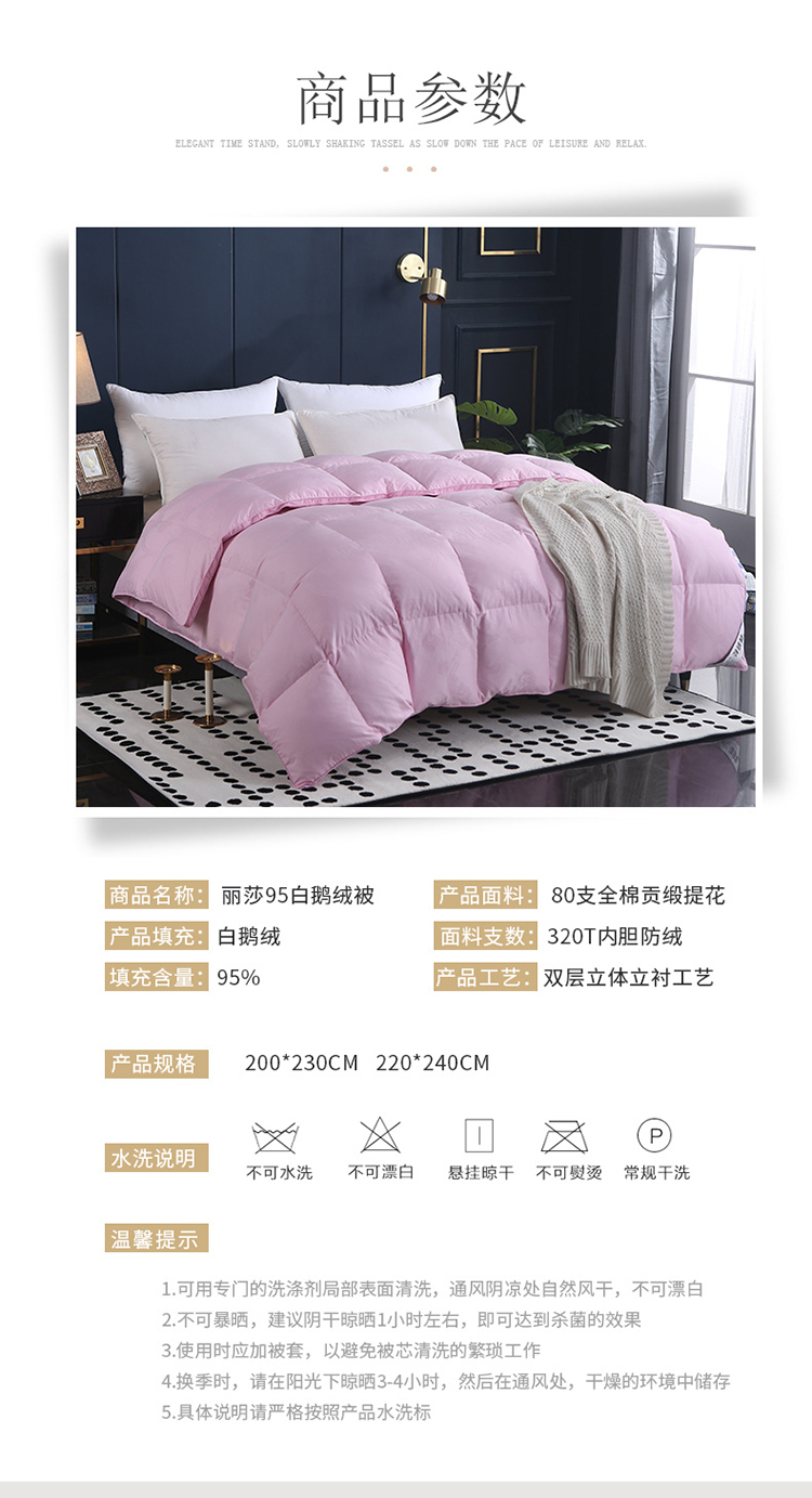 商品名称:绒研羽绒 2025爆款丽莎羽绒被全棉贡缎提花 粉色
