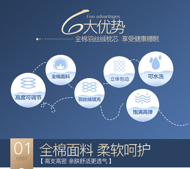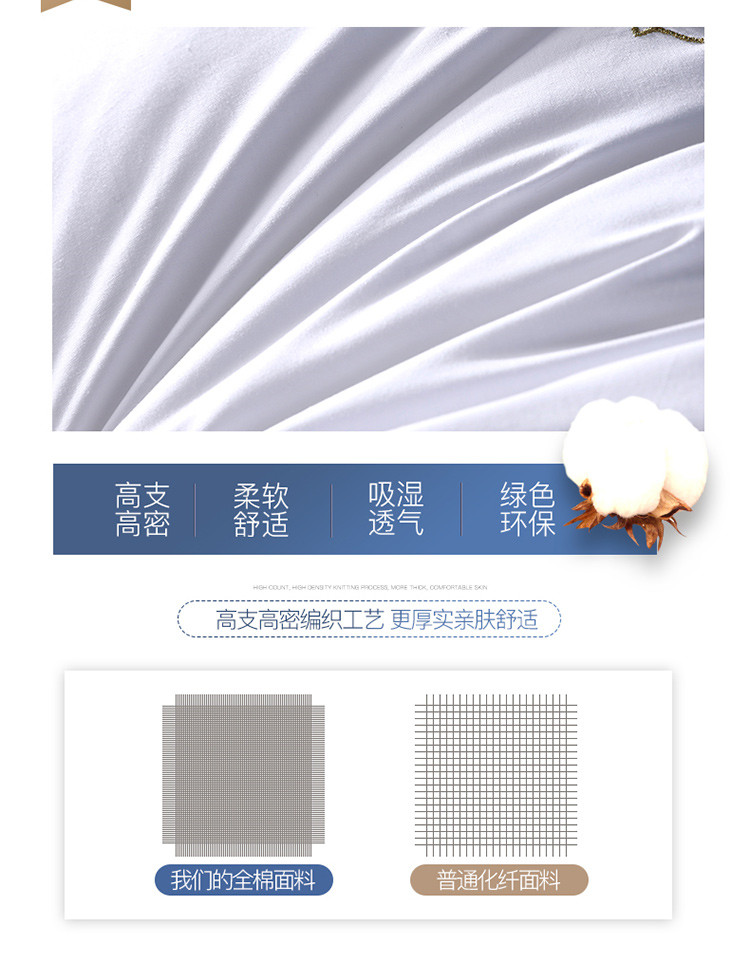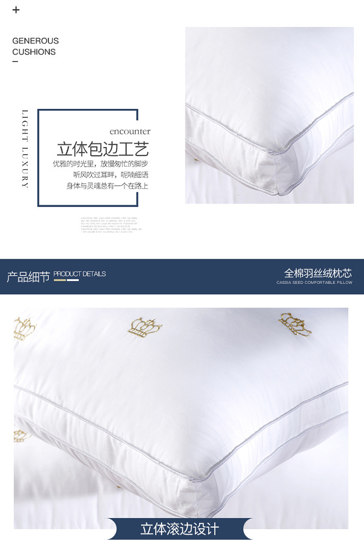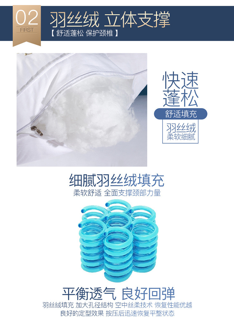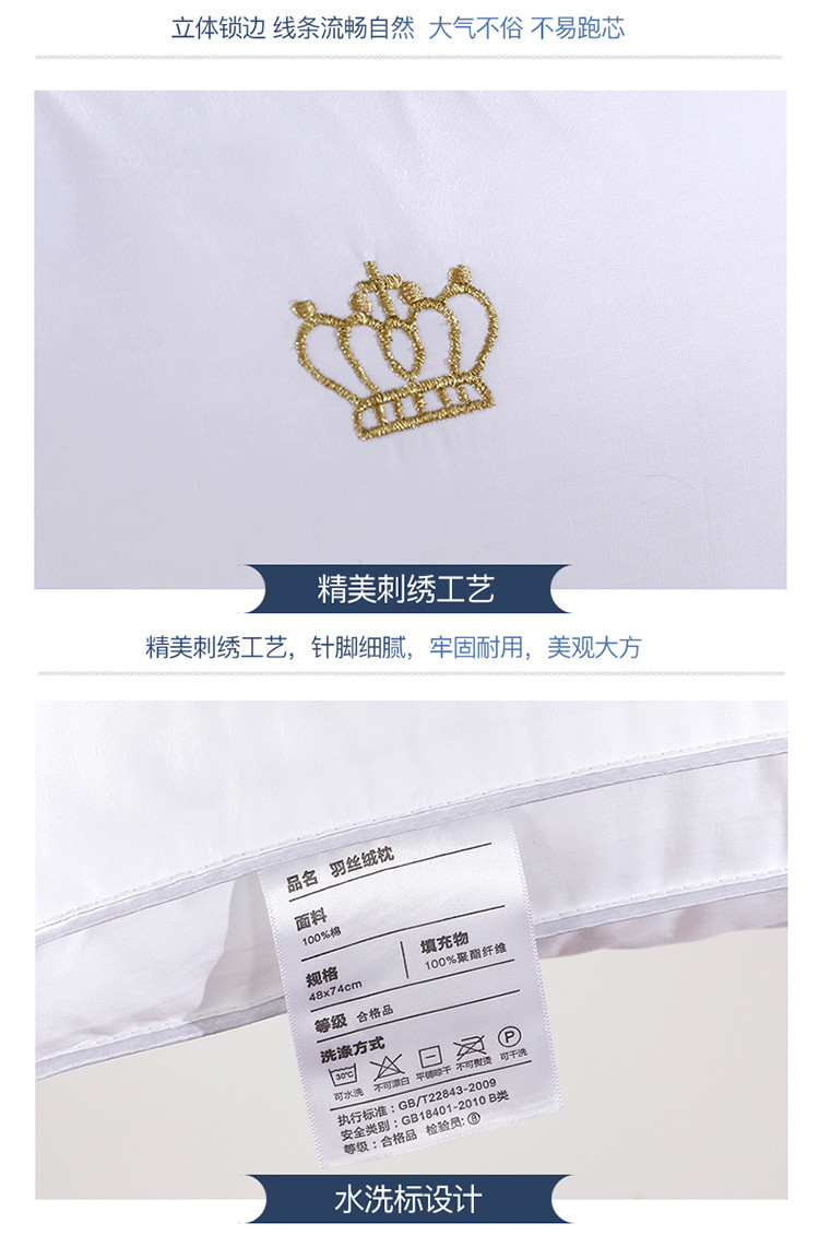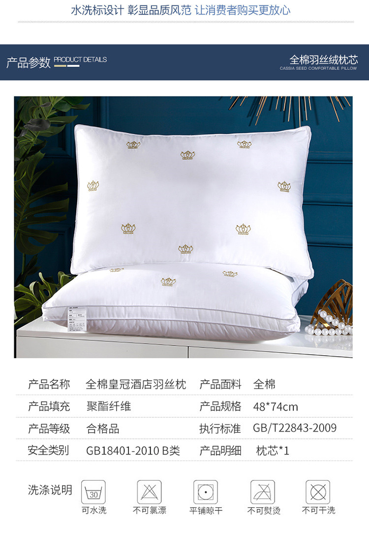 当前位置: 91家纺网 > 商品网购 > 枕头/枕芯/保健枕/颈椎枕 > 普通枕芯 > 帝诺妮枕芯坊 2019全棉皇冠酒店羽丝枕一只