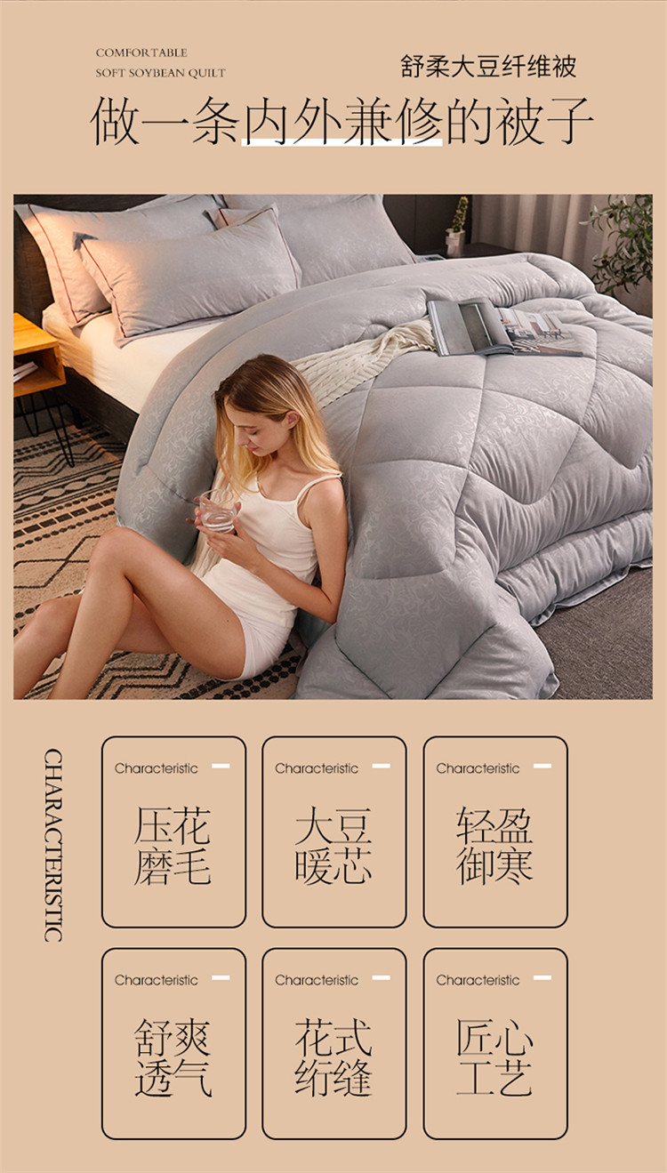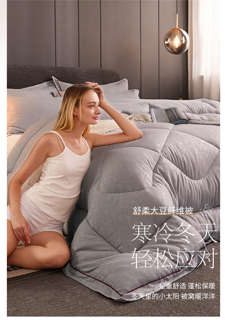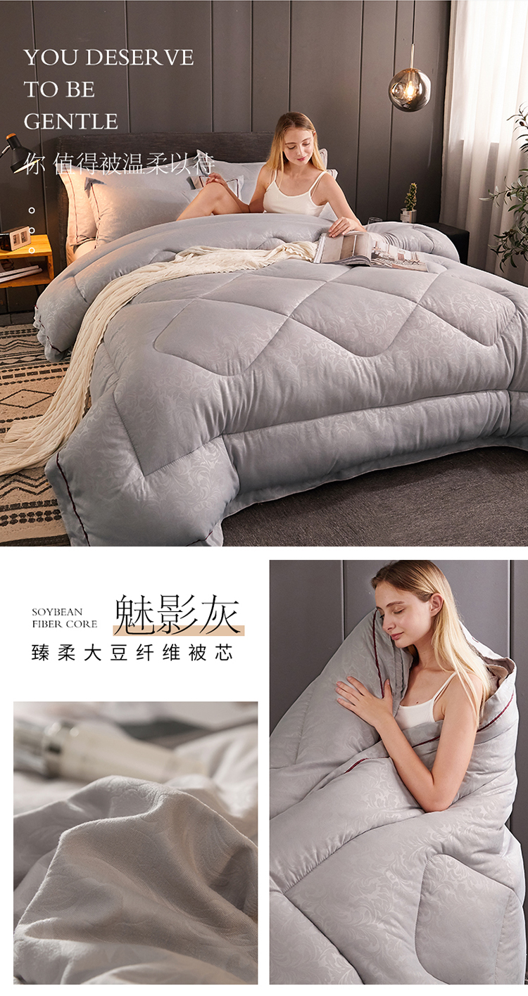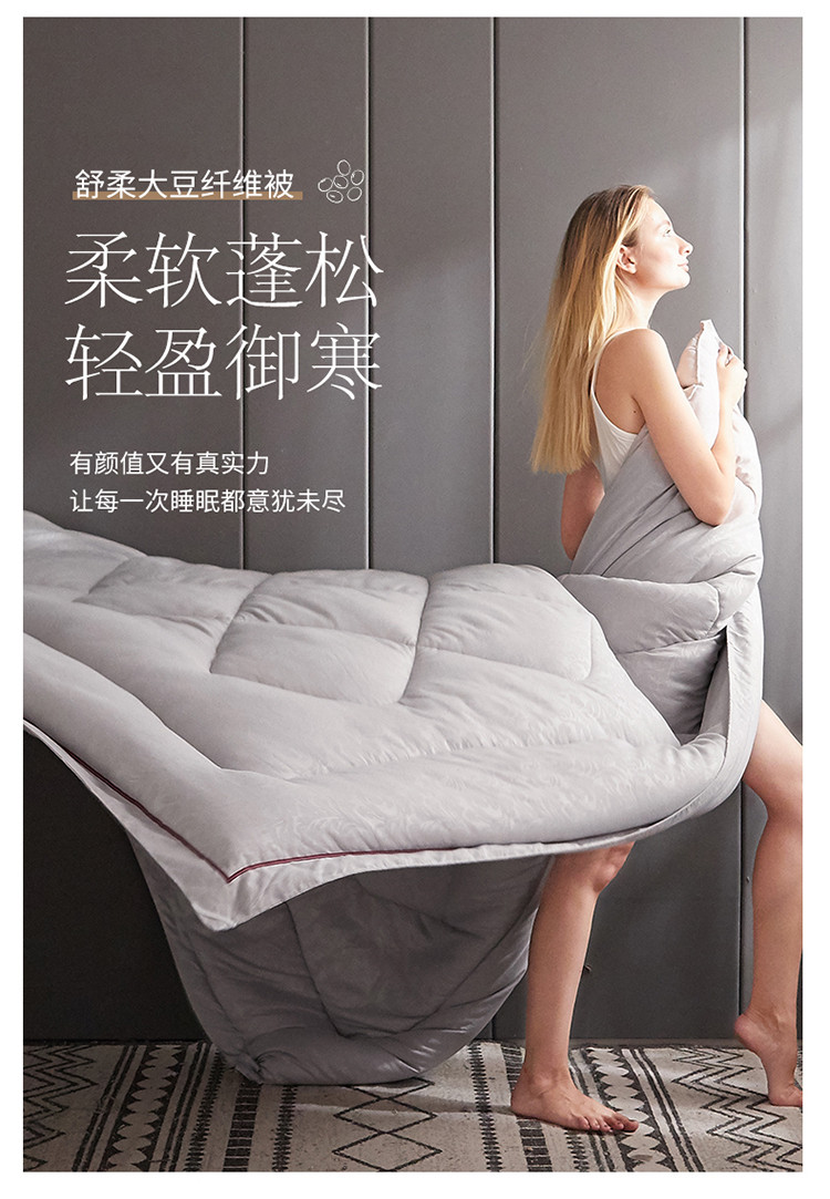 • 91家纺网 家纺一手货源 找家纺 换种生活2019新款臻品大豆冬被(带桶状手拎袋)外模图魅影灰