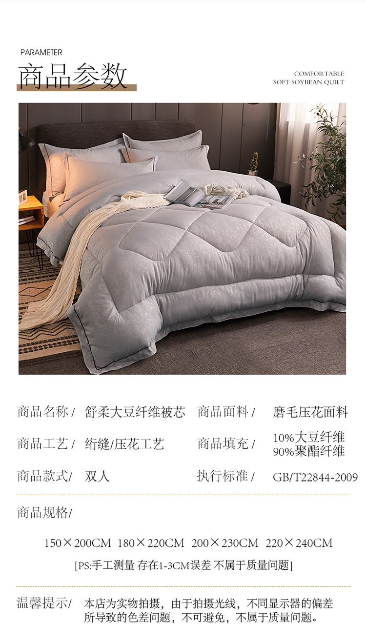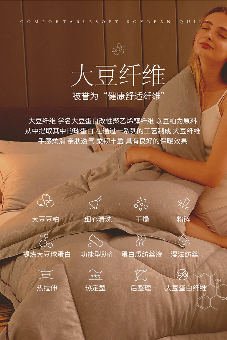 • 填充纤维种类: 大豆蛋白改性聚酯纤维