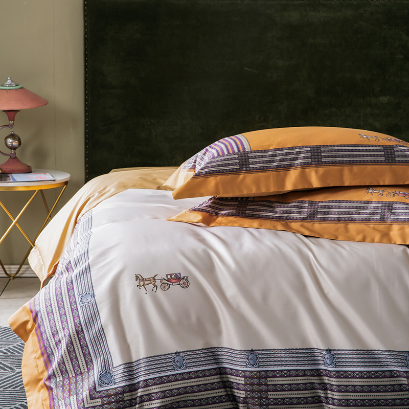 商品名称:太古汇 双股数码印花宽边四件套 布朗特-桔