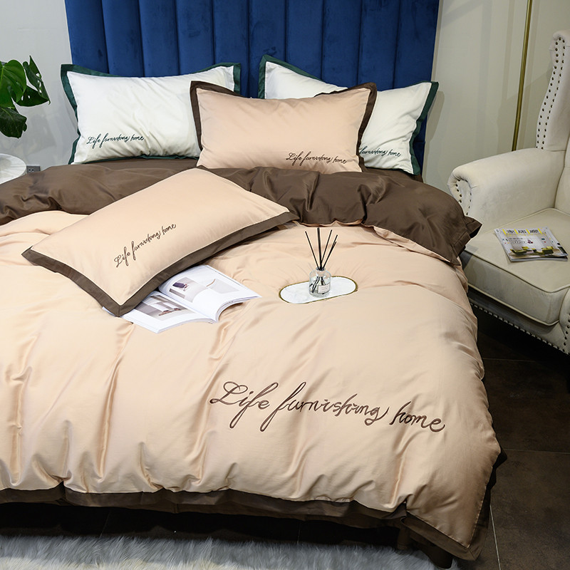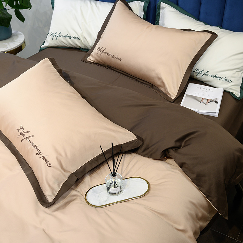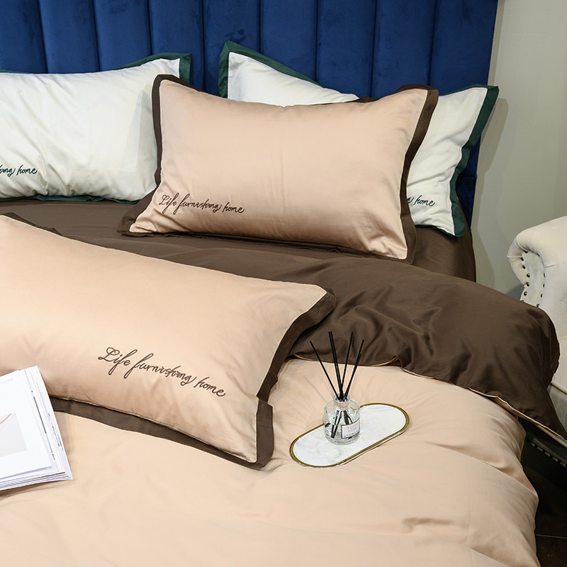 商品名称:太古汇 60支贡缎长绒棉纯色双拼四件套实拍图 班尼咖