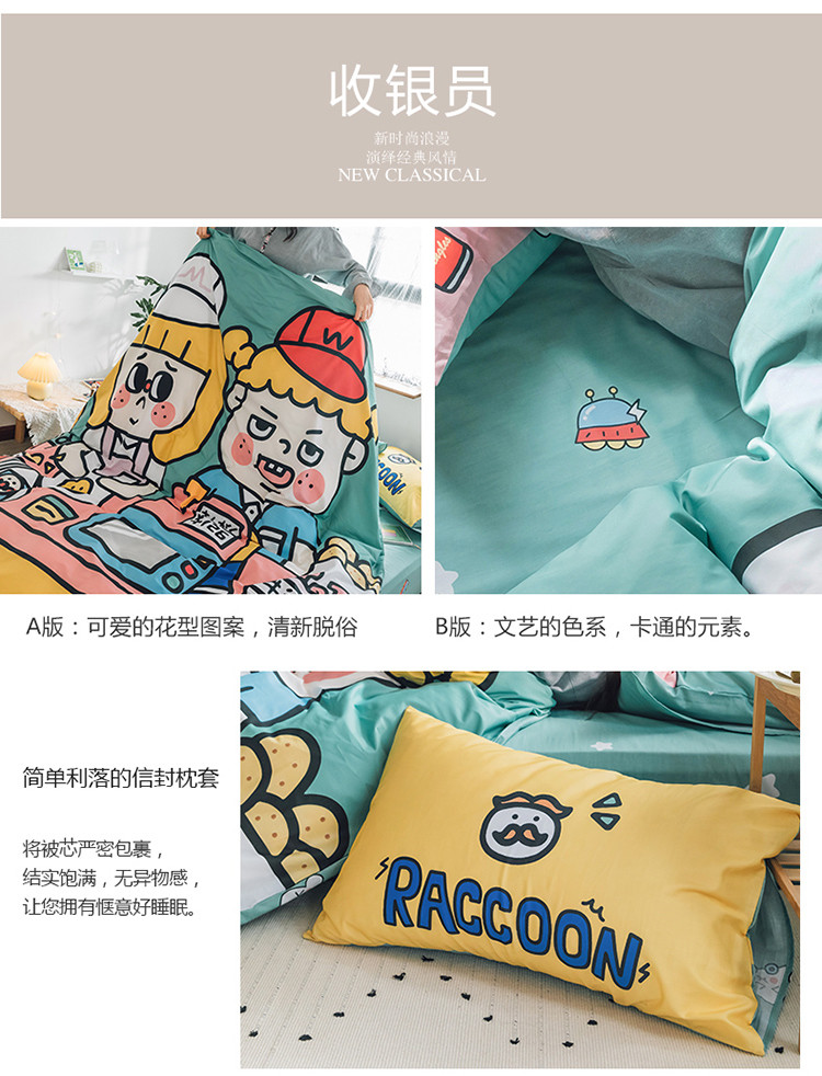 商品名称:窝米 2020设计师合作款大版卡通全棉四件套 收银员