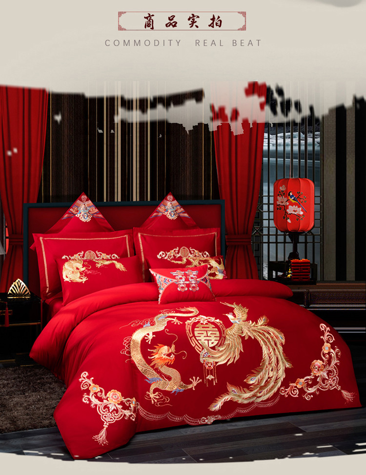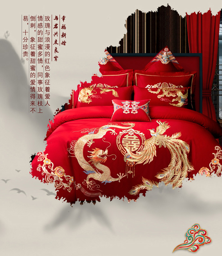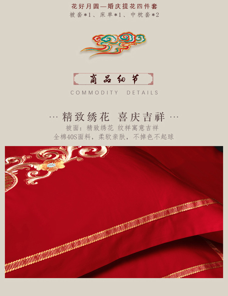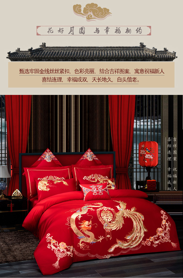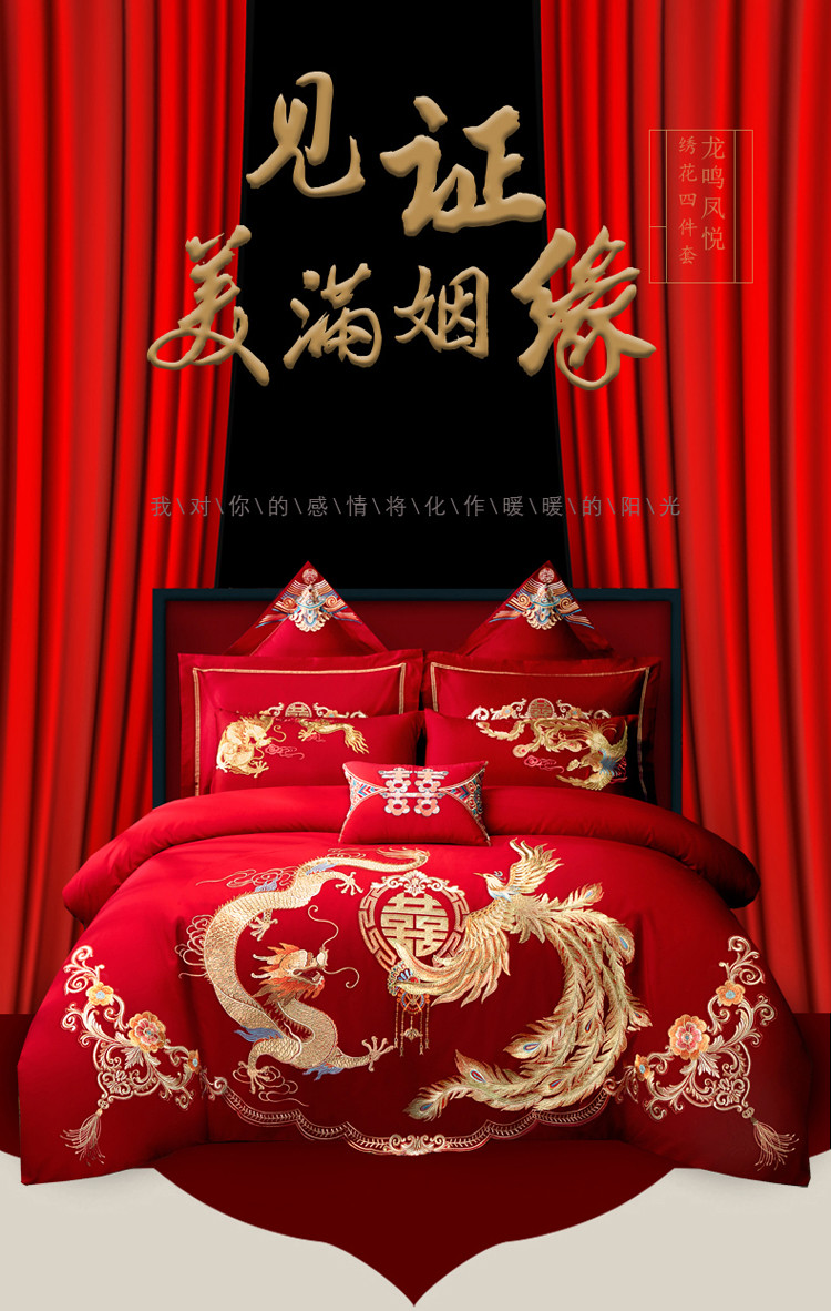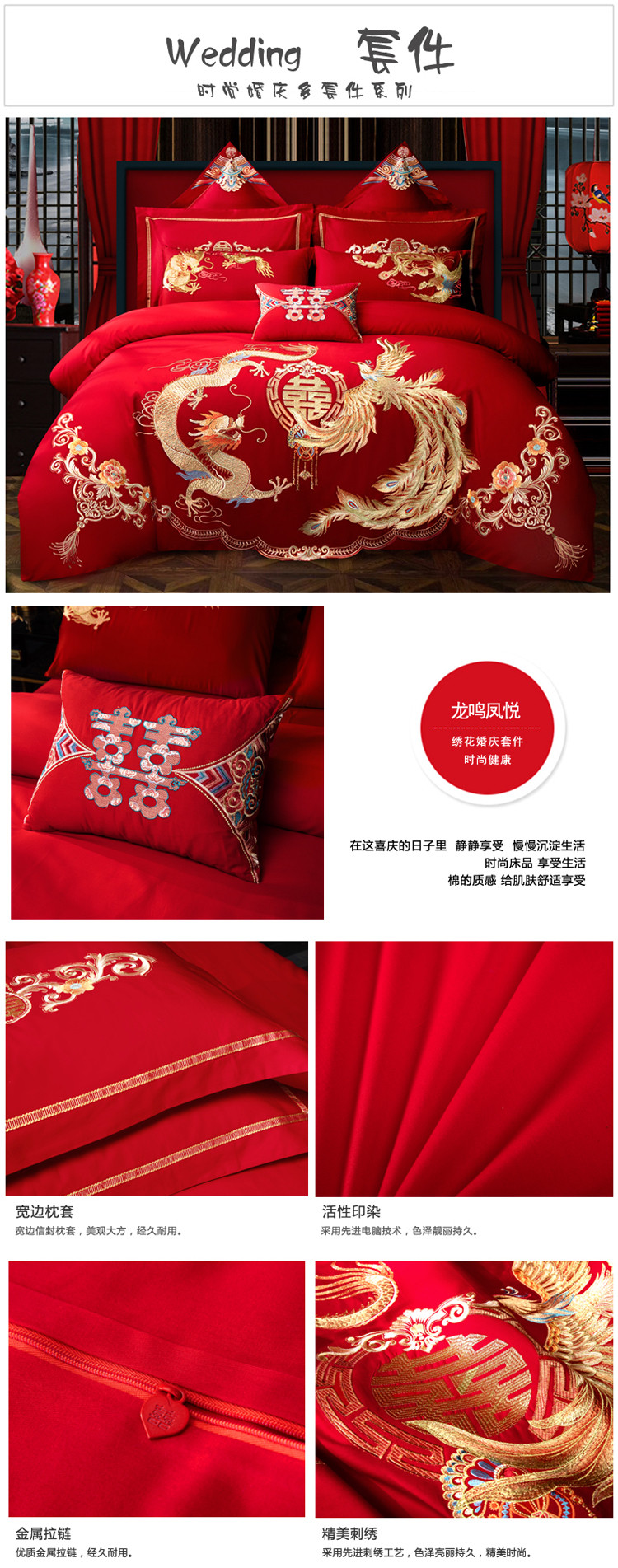 当前位置: 91家纺网 > 商品网购 > 床品套件 > 四件套 > 全棉普通四件套 > 甜咪咪 2020新款全棉绣花婚庆四件套 龙鸣凤悦
