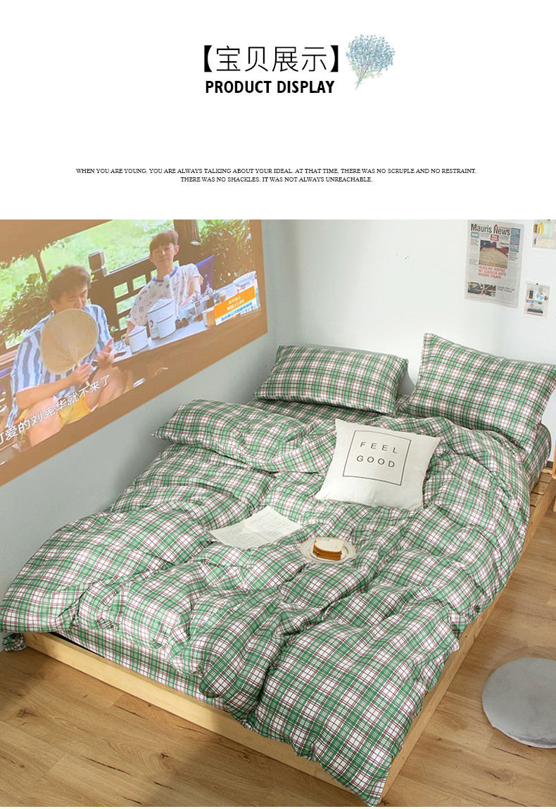 (总)感遇家纺 2022新款全棉印花四件套,格子小花,黑格恐龙,蓝色心情,浅暖