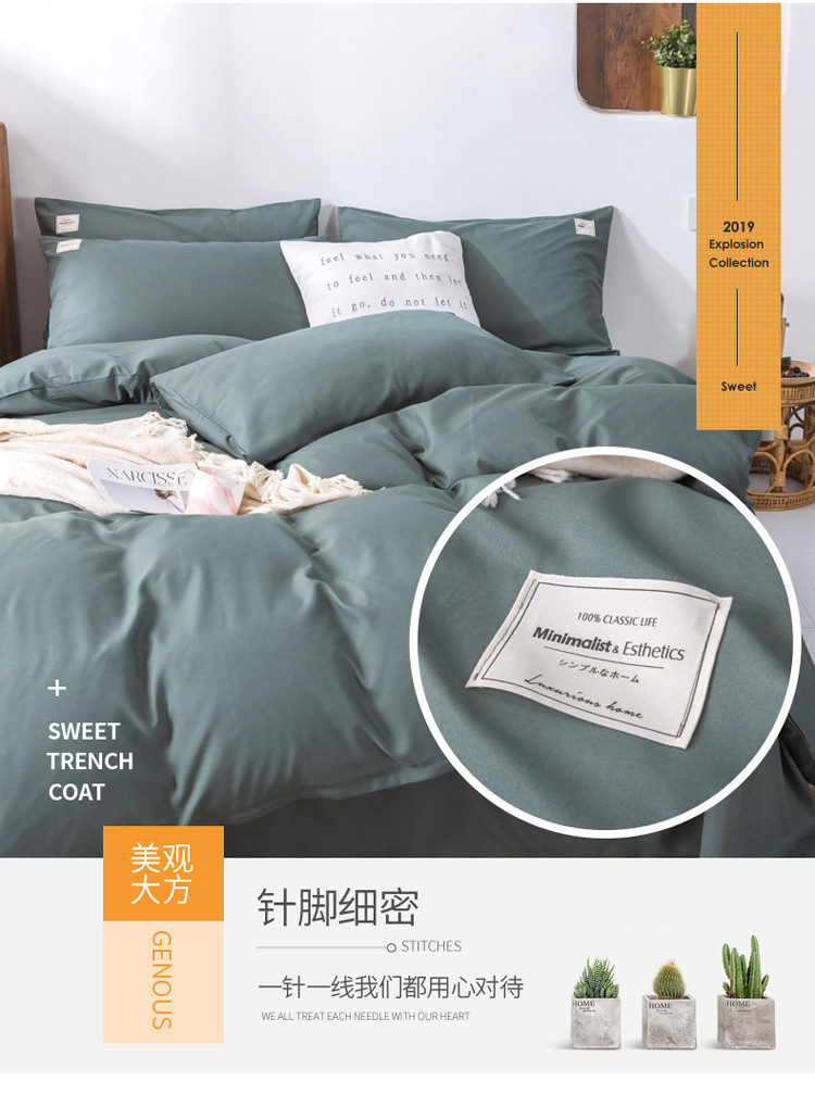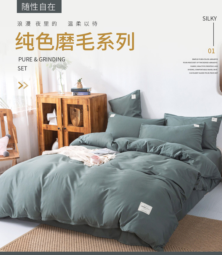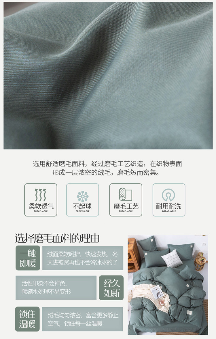 商品名称:米粒 2020新款纯色磨毛四件套 果绿