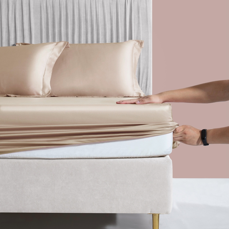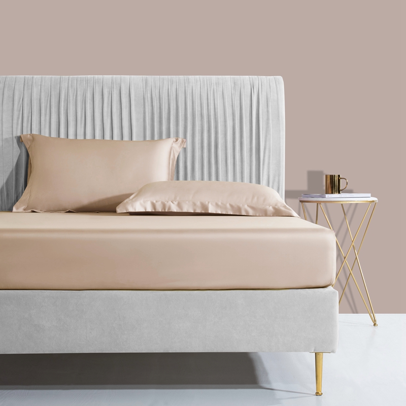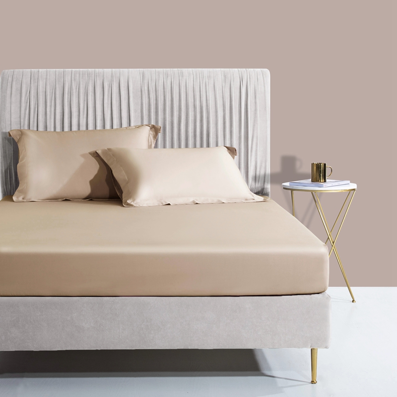 小米笠 2021新款60支长绒棉纯色床笠三件套床盖床单可定制四季款 香槟金