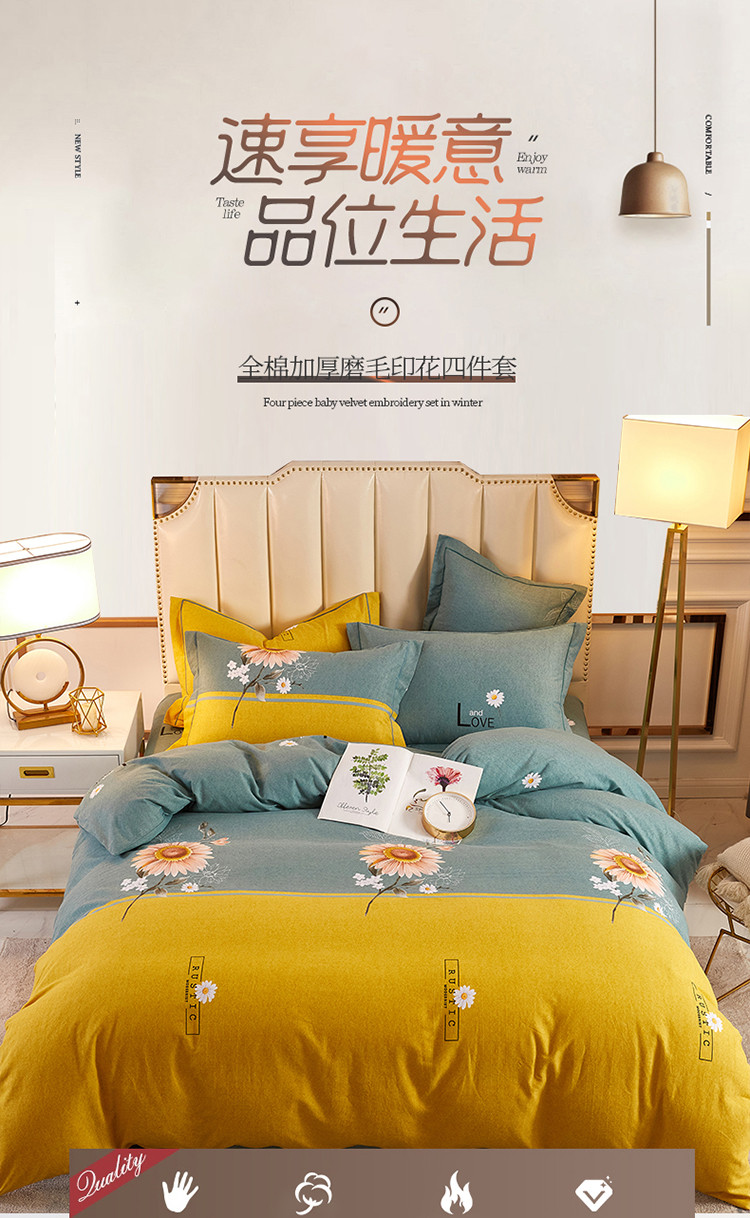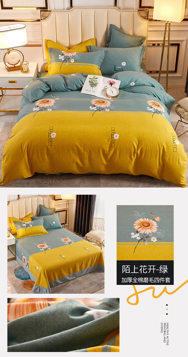当前位置: 91家纺网 > 商品网购 > 床品套件 > 四件套 > 全棉普通四件套 > 雲归梦 2020新款全棉加厚磨毛四件套 陌上花开-绿