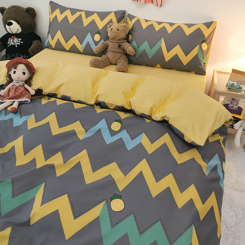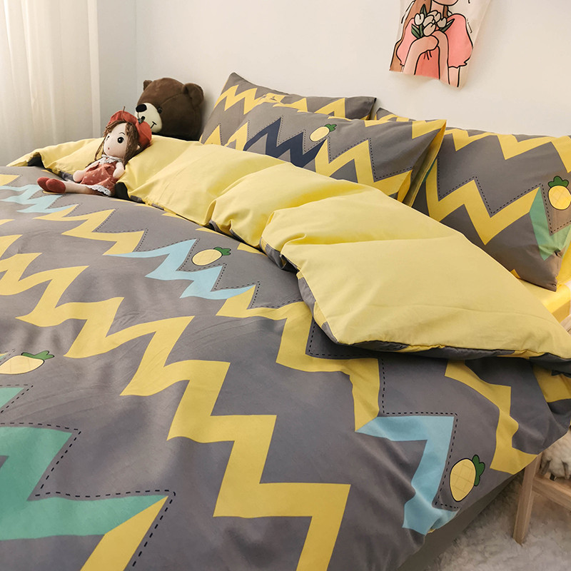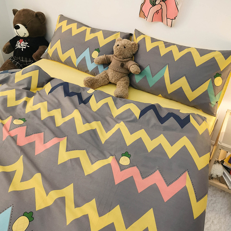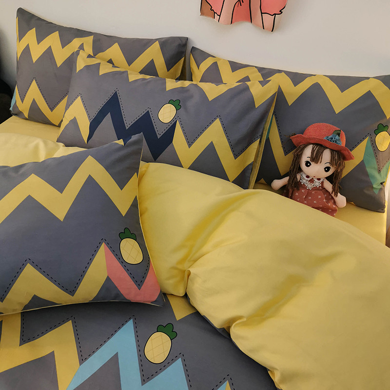 商品名称:HL原创 2020新款13372全棉小清新四件套实拍图 甜格菠萝