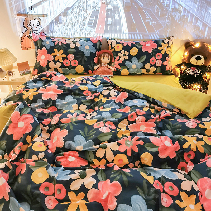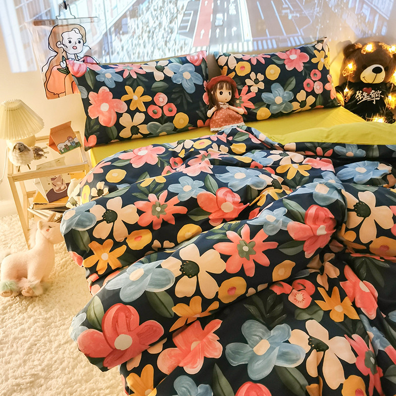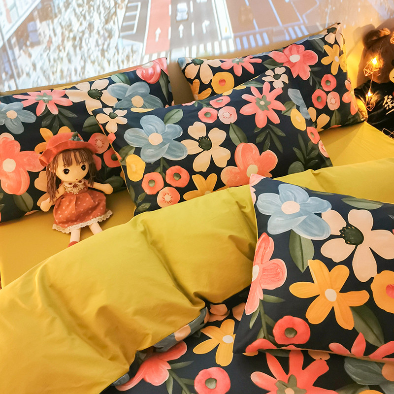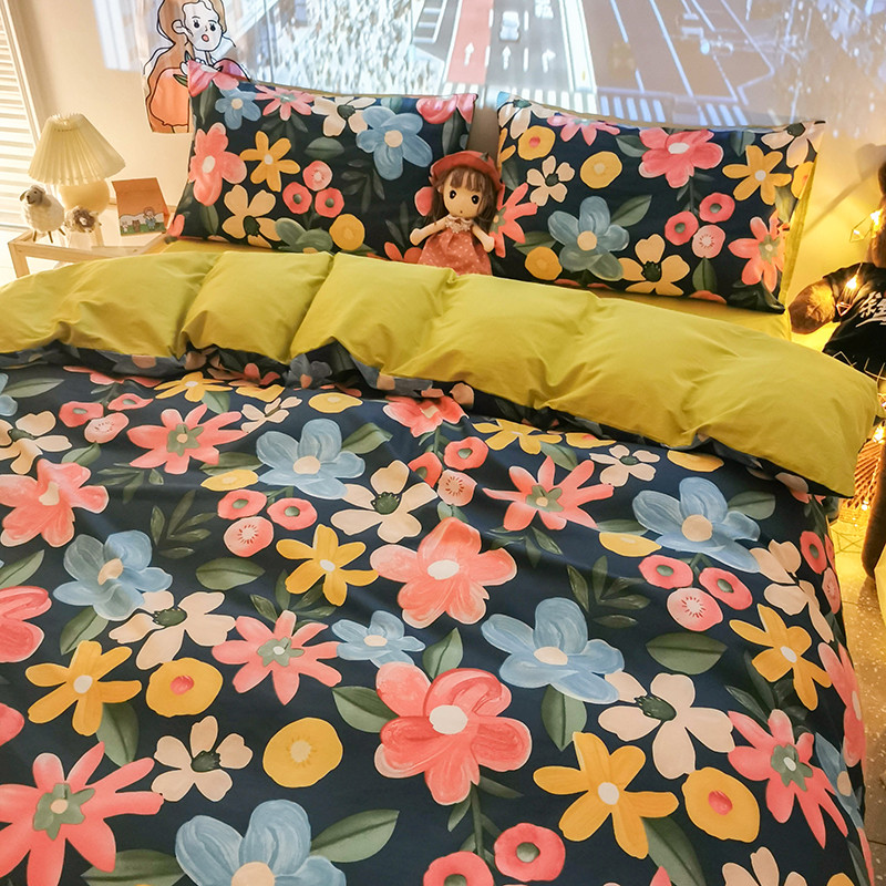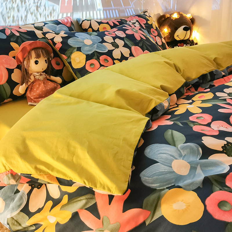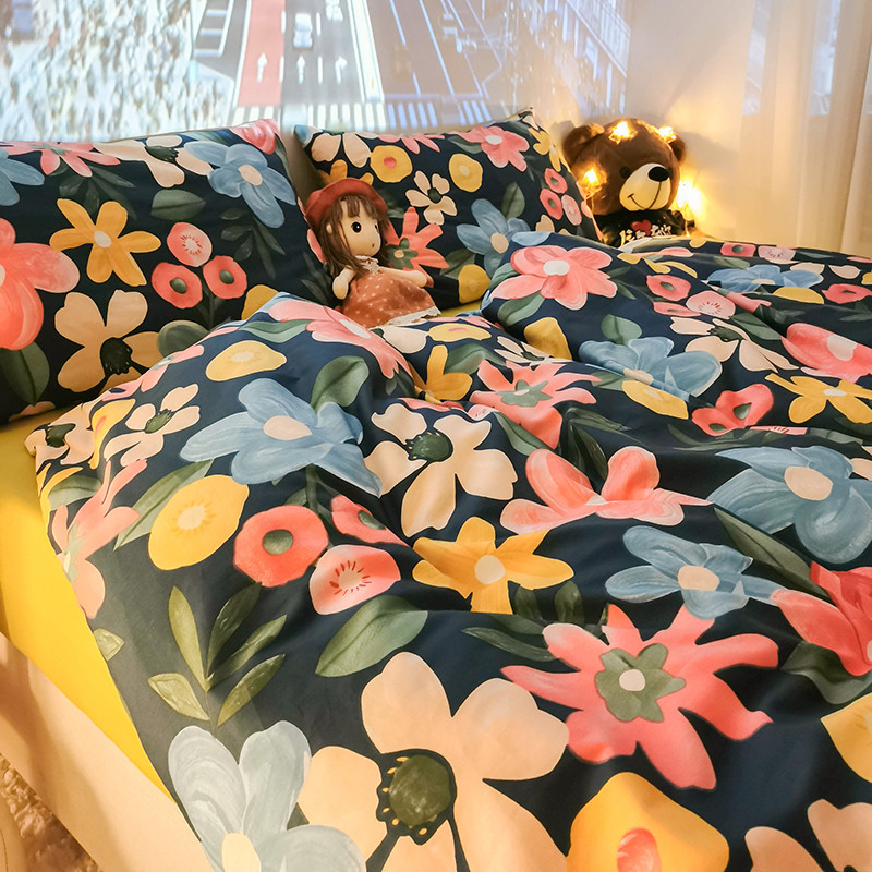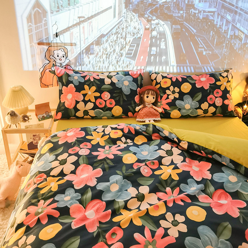 商品名称:HL原创新款13372全棉四件套夜晚网红风实拍图 花韵