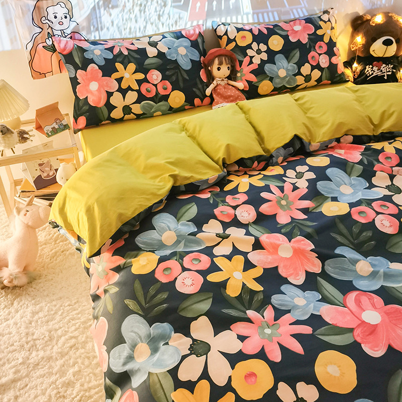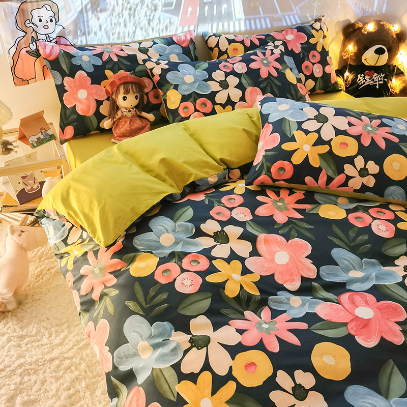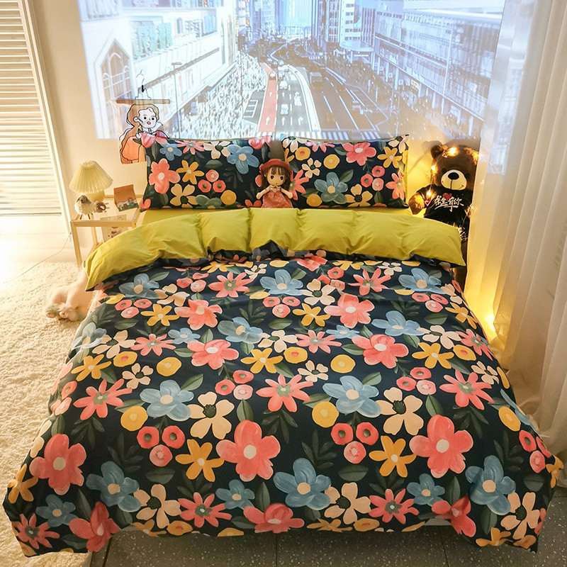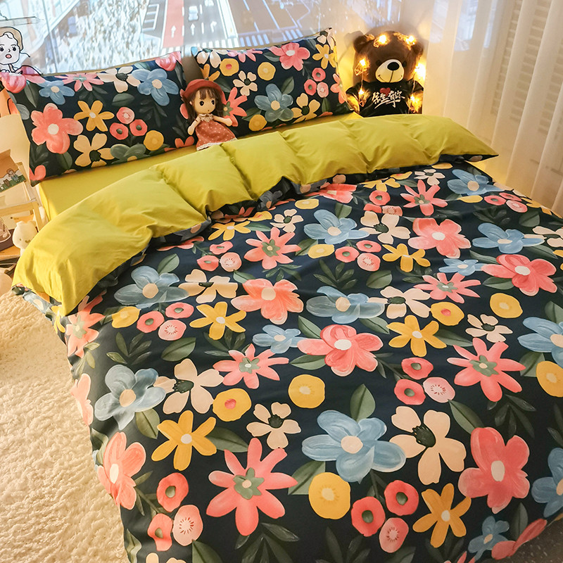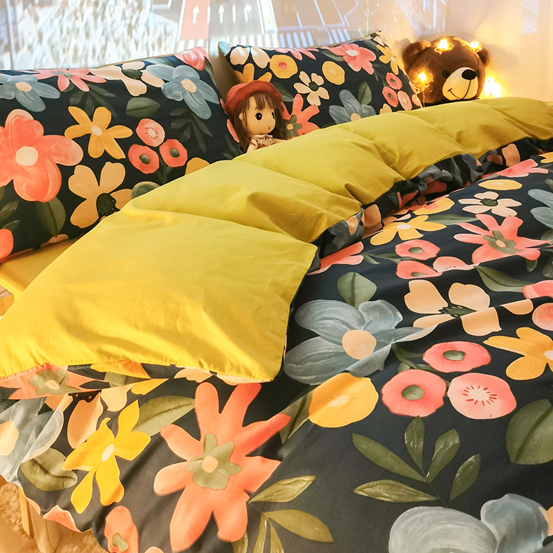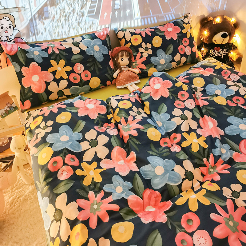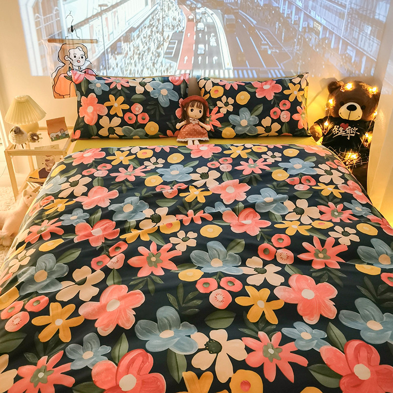 商品名称:HL原创新款13372全棉四件套夜晚网红风实拍图 花韵