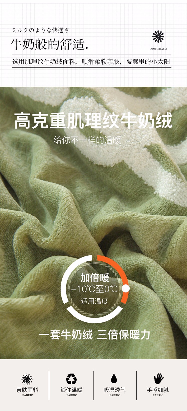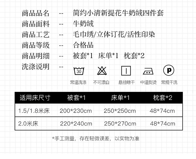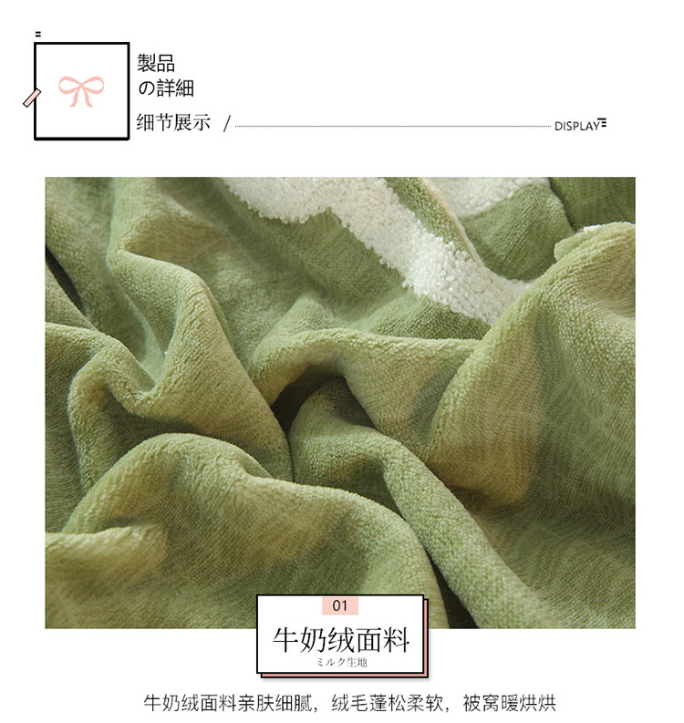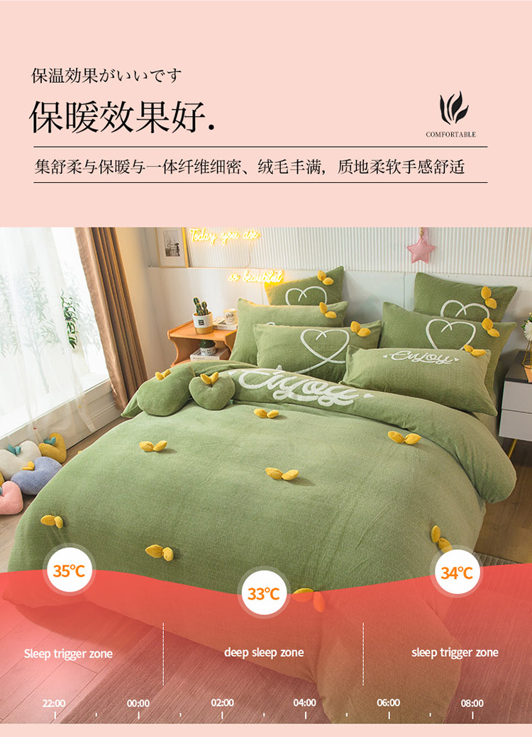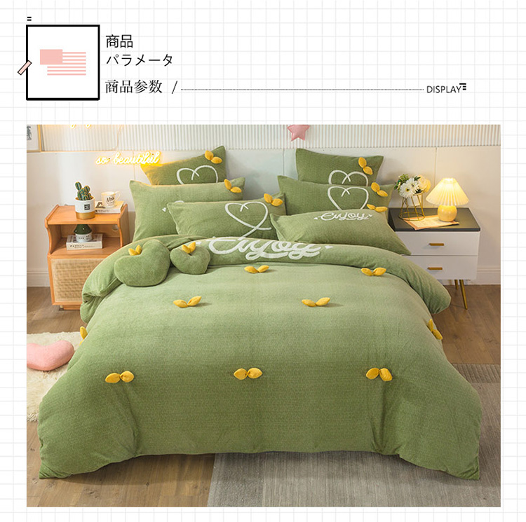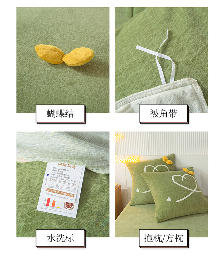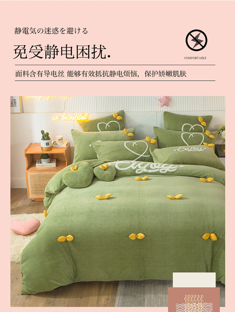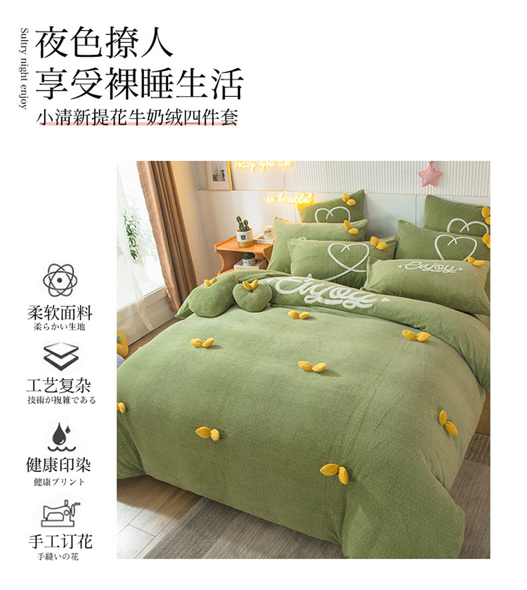 商品名称:兴美佳新款日式简约小清新提花牛奶绒四件套唯爱-牛油果