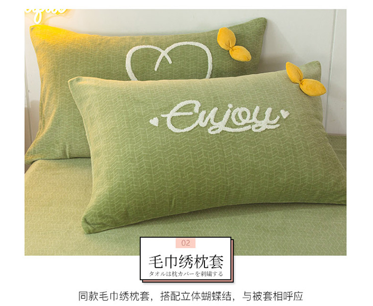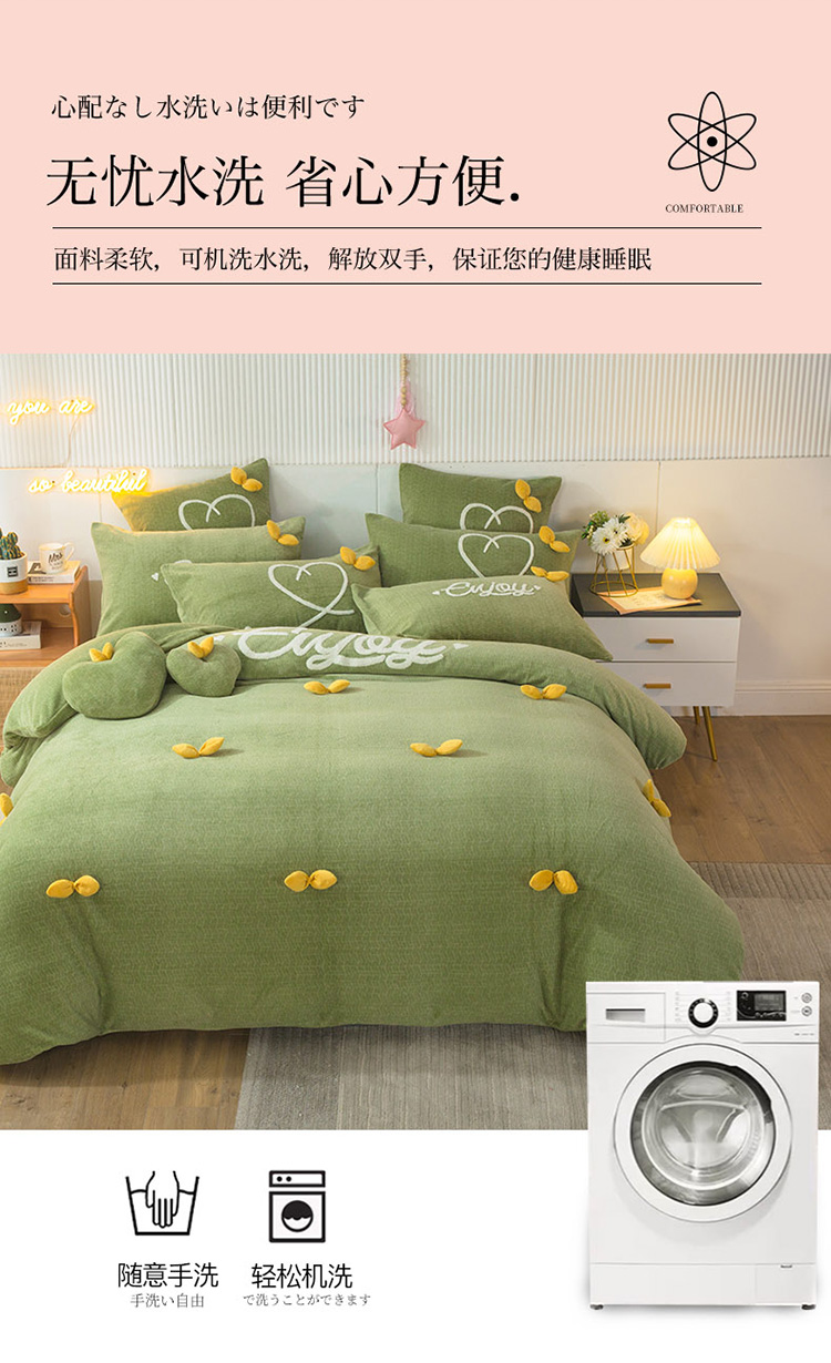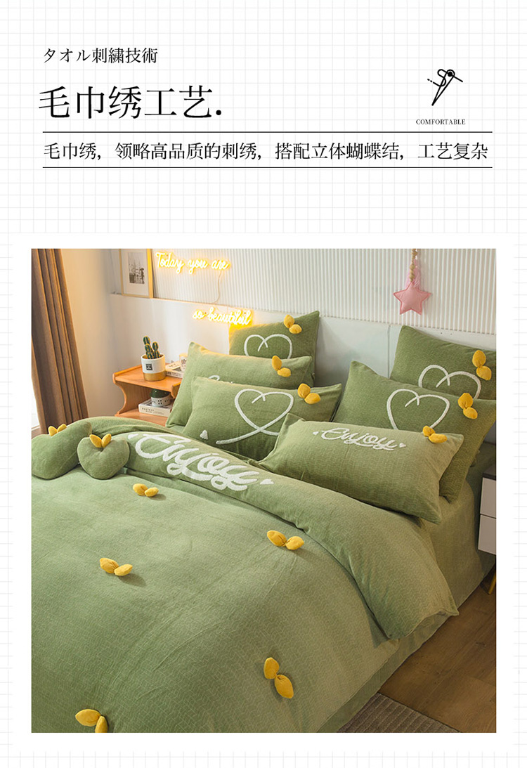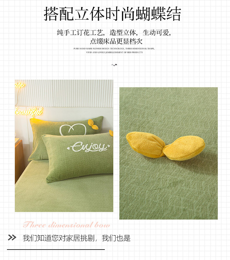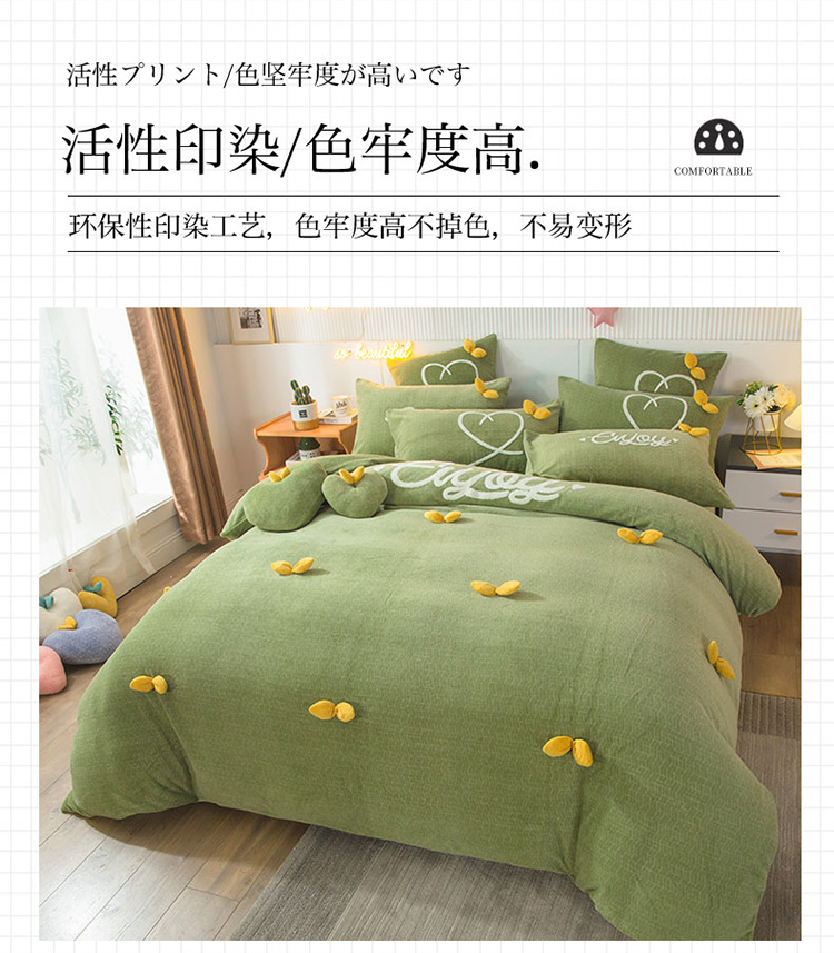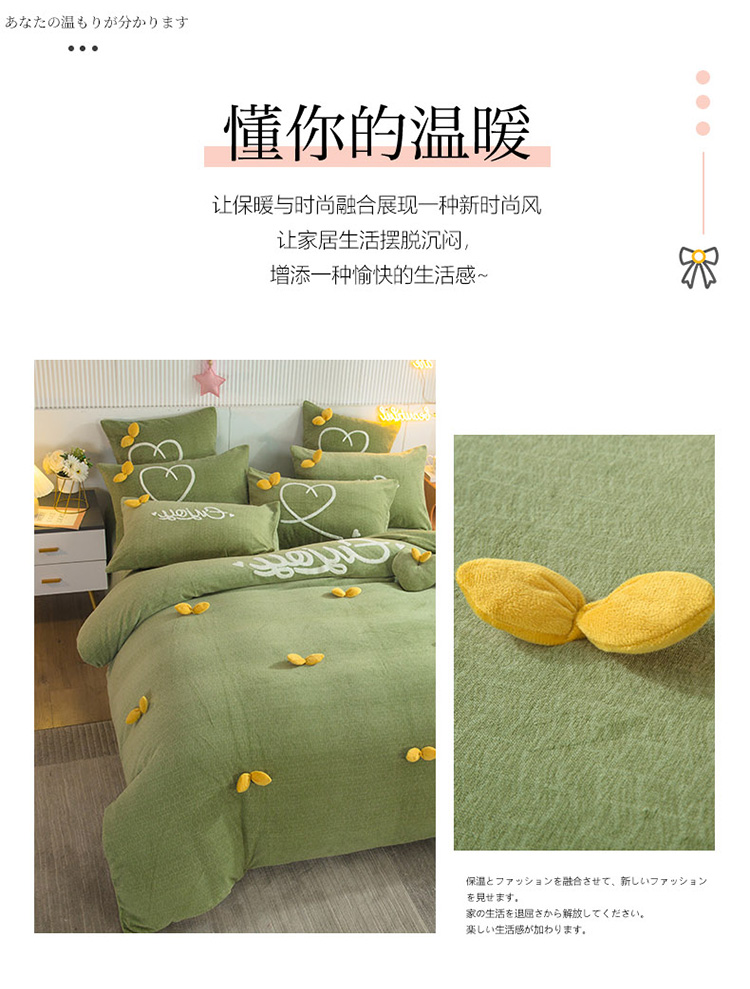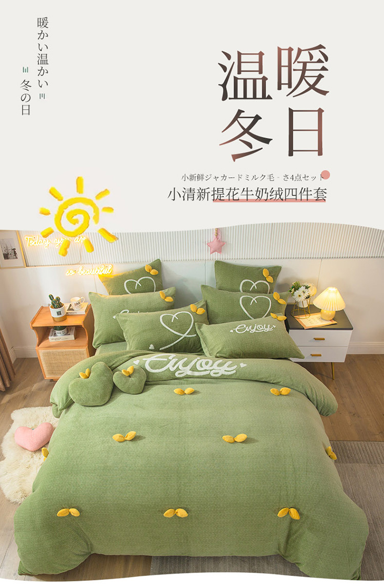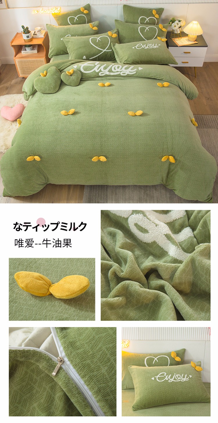 兴美佳新款日式简约小清新提花牛奶绒四件套唯爱-牛油果