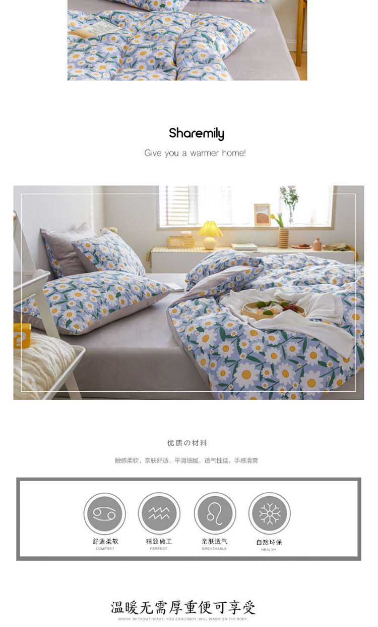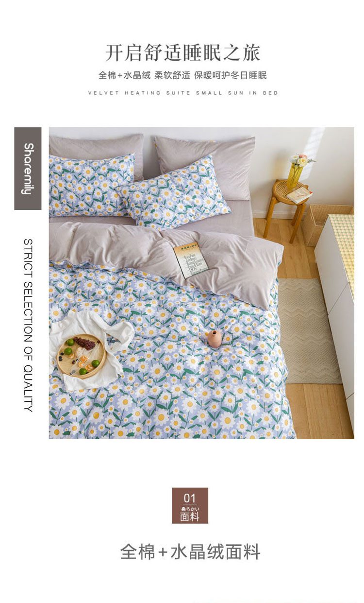 当前位置: 91家纺网 > 商品网购 > 床品套件 > 四件套 > 磨绒四件套 > 梦家居 2020新款秋冬A棉B绒四件套 希望田野绒