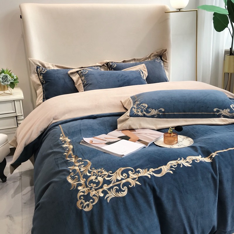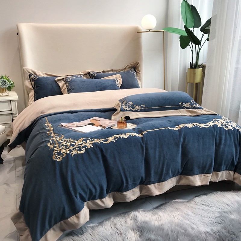 商品名称:馨蕊家居 2021新款秋冬轻奢煦暖绒四件套 巴比伦-藏蓝
