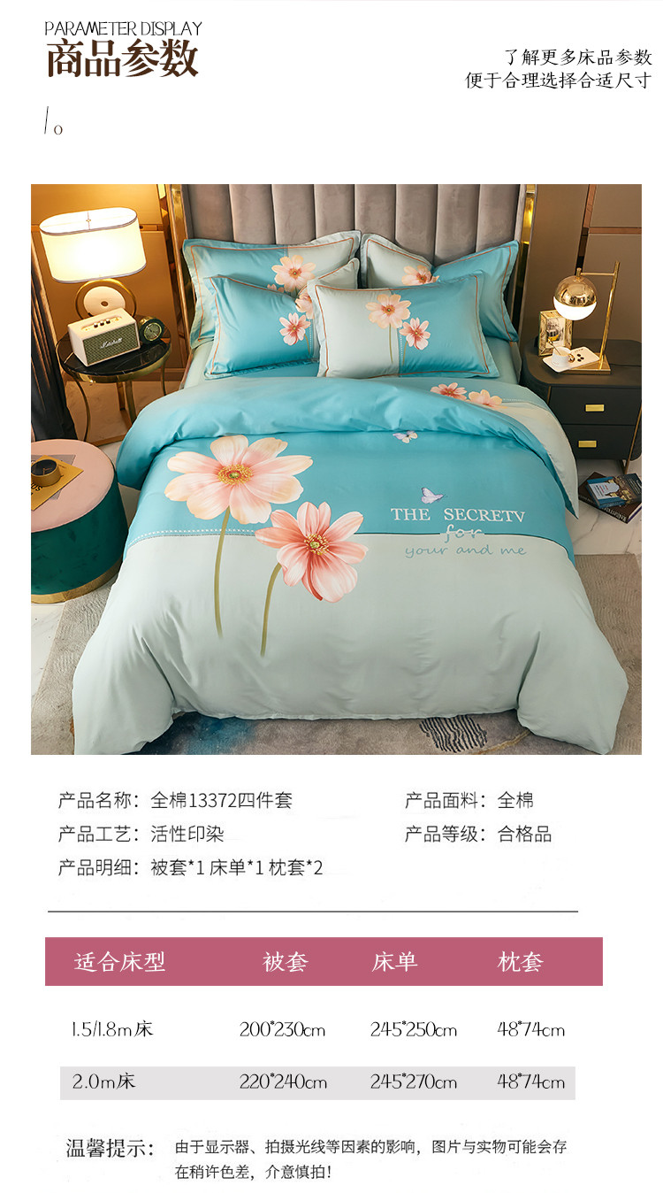 商品名称:雲归梦 2021全棉大版四件套中国风花卉朝花夕拾(绿)