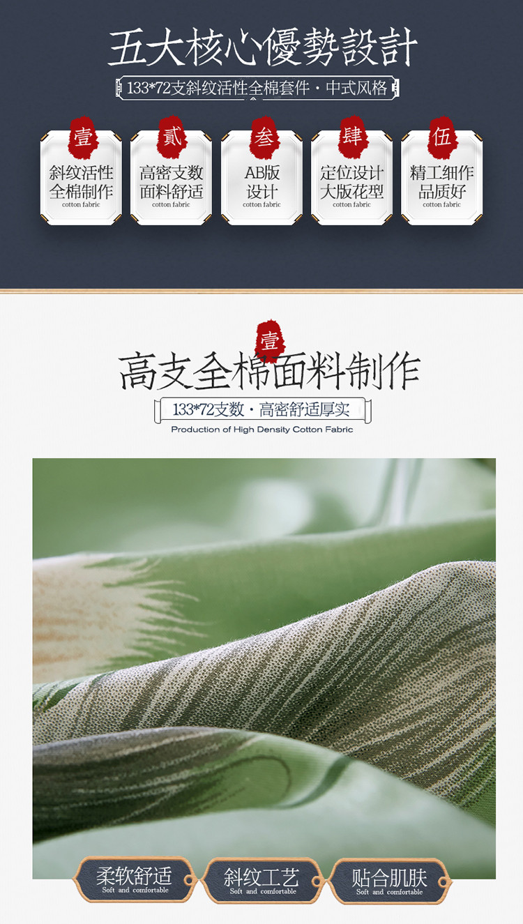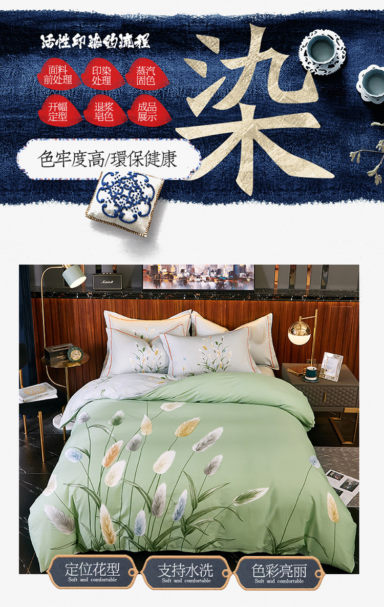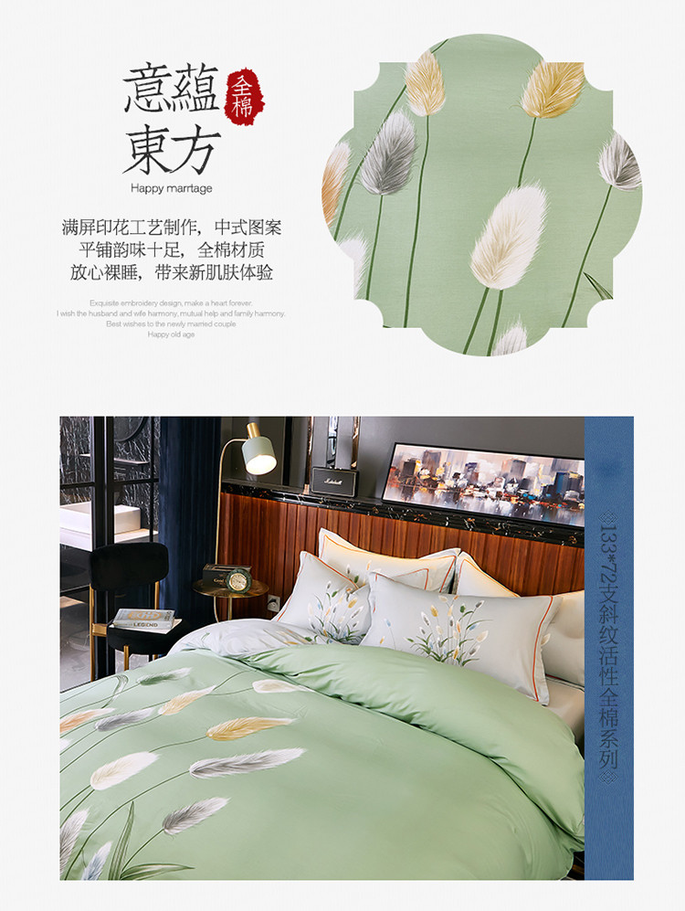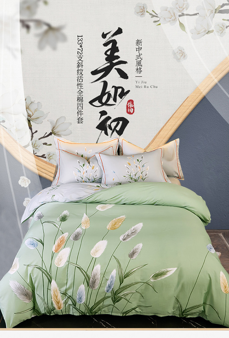 商品名称:雲归梦 2021全棉大版四件套中国风花卉 麦田印象-绿