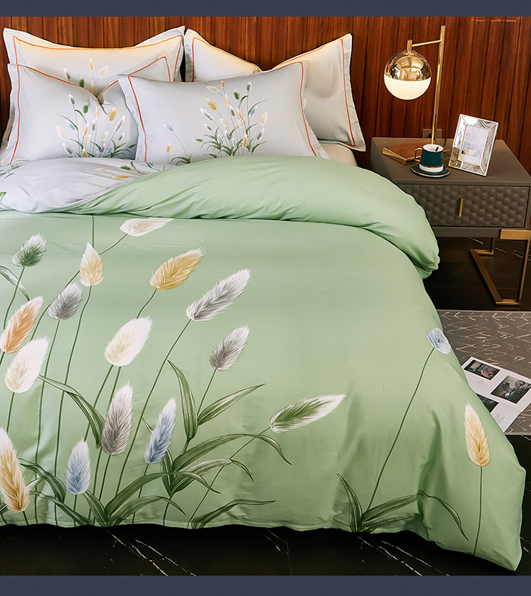 雲归梦 2021全棉大版四件套中国风花卉 麦田印象-绿