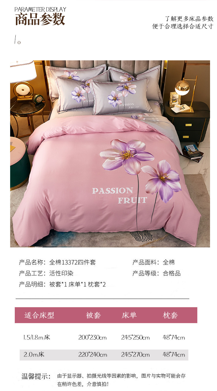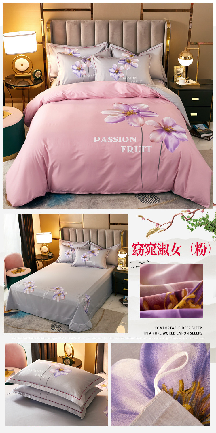 商品名称:雲归梦 2021全棉大版四件套中国风花卉 窈窕淑女(粉)