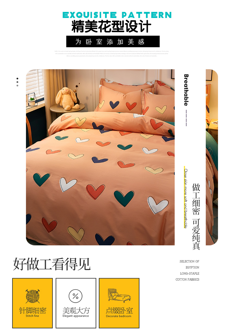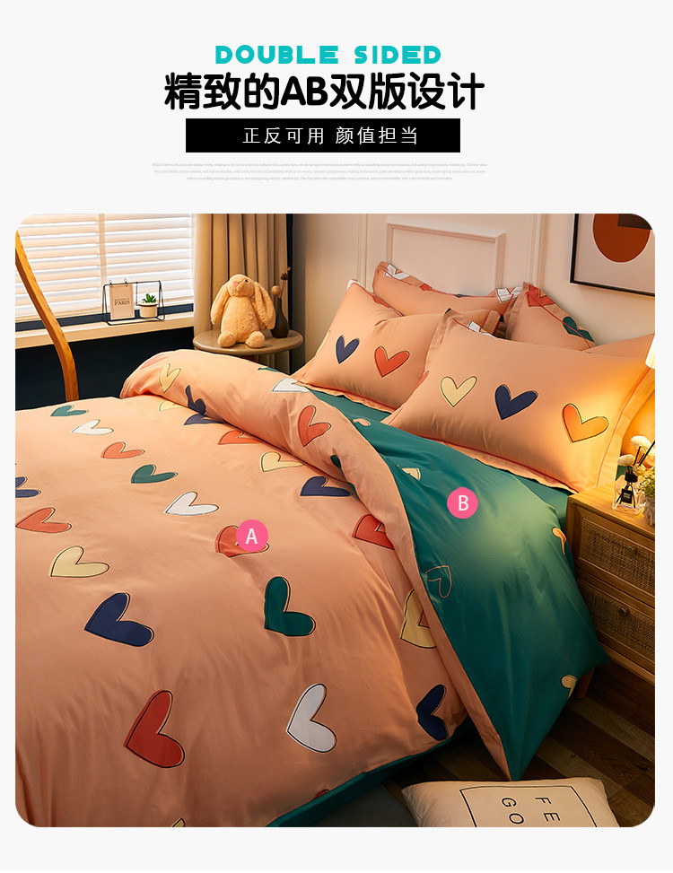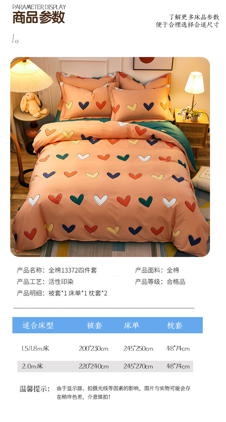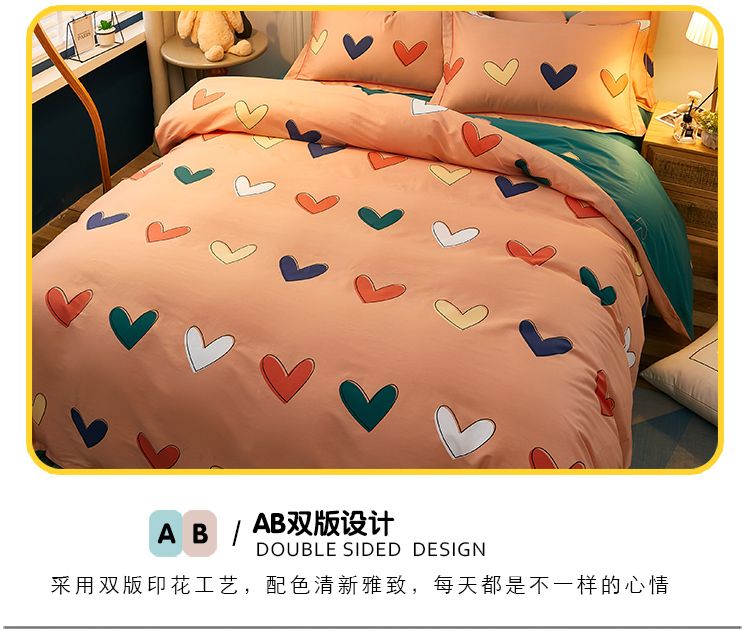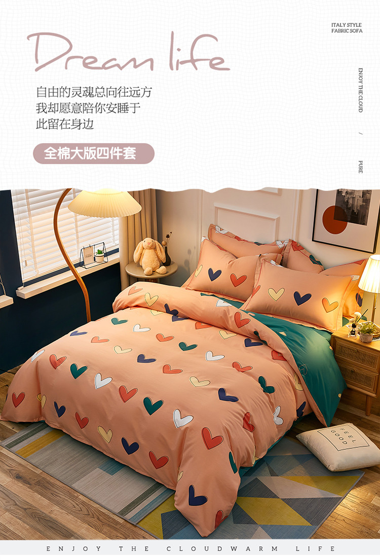 商品名称:雲归梦 2021全棉大版四件套可爱卡通系列 心心相印