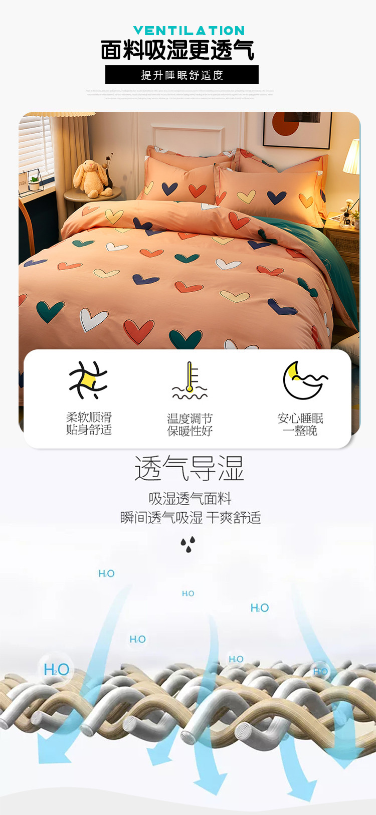 雲归梦 2021全棉大版四件套可爱卡通系列 心心相印