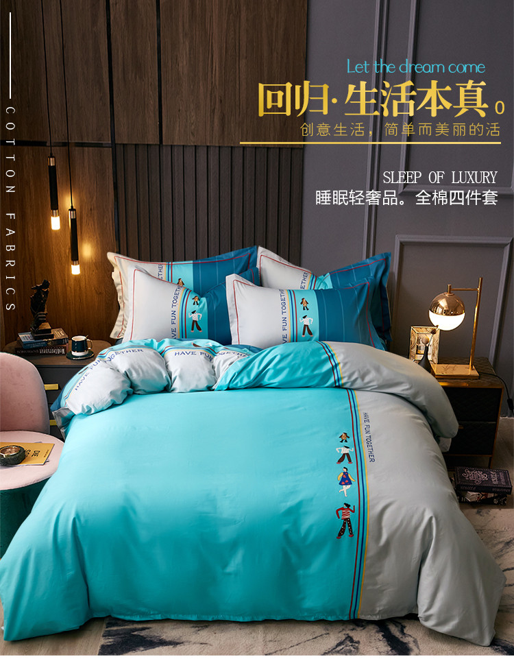 (总)雲归梦 2021新款全棉生态磨毛刺绣四件套,慕思-橙色,慕思-粉紫,慕思-灰,慕思-米黄,慕思-青绿,慕思-天蓝