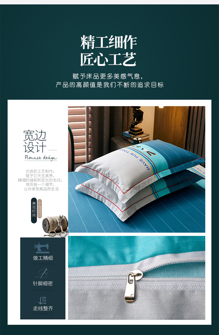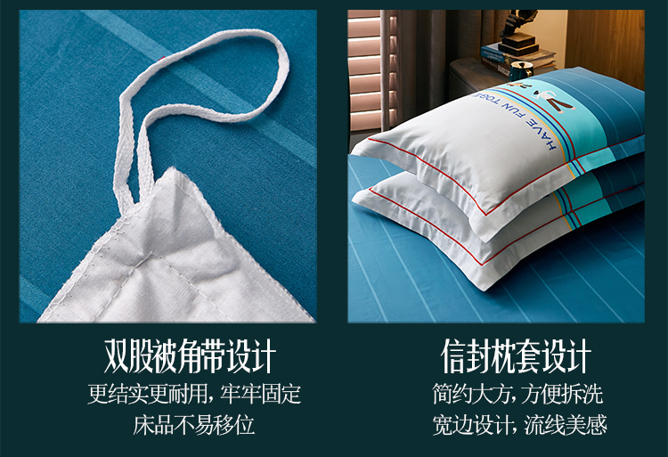 商品名称:雲归梦 2021全棉大版四件套休闲格条系列 衍生(蓝)