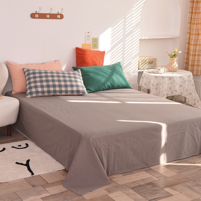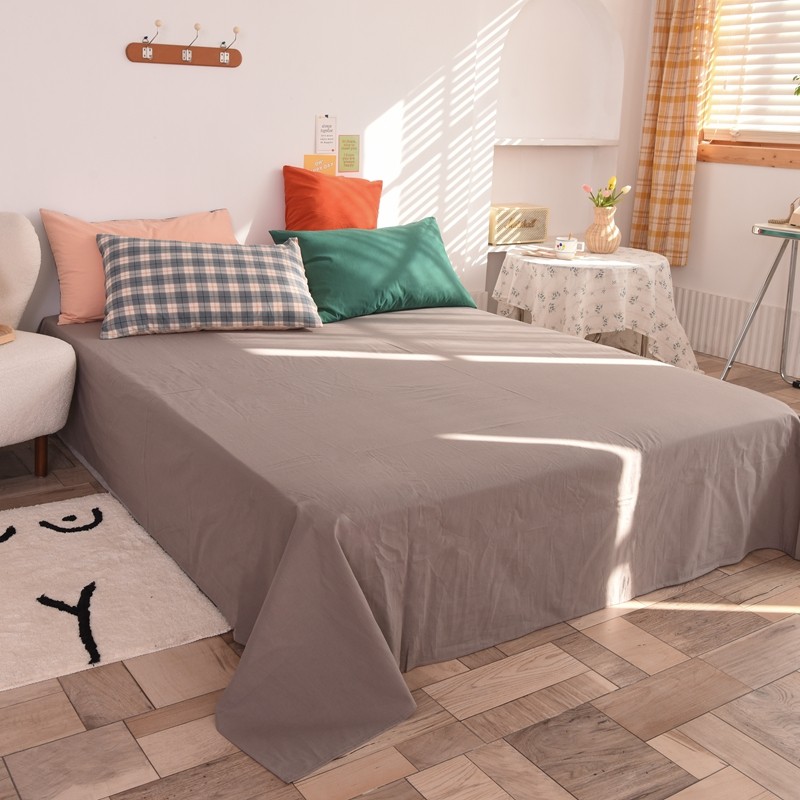 慕梵 2021新款全棉水洗棉撞色系列单床单 清雅灰格