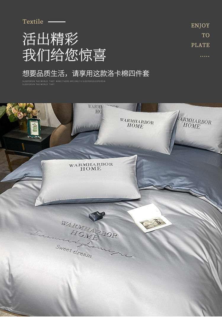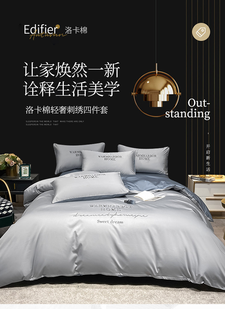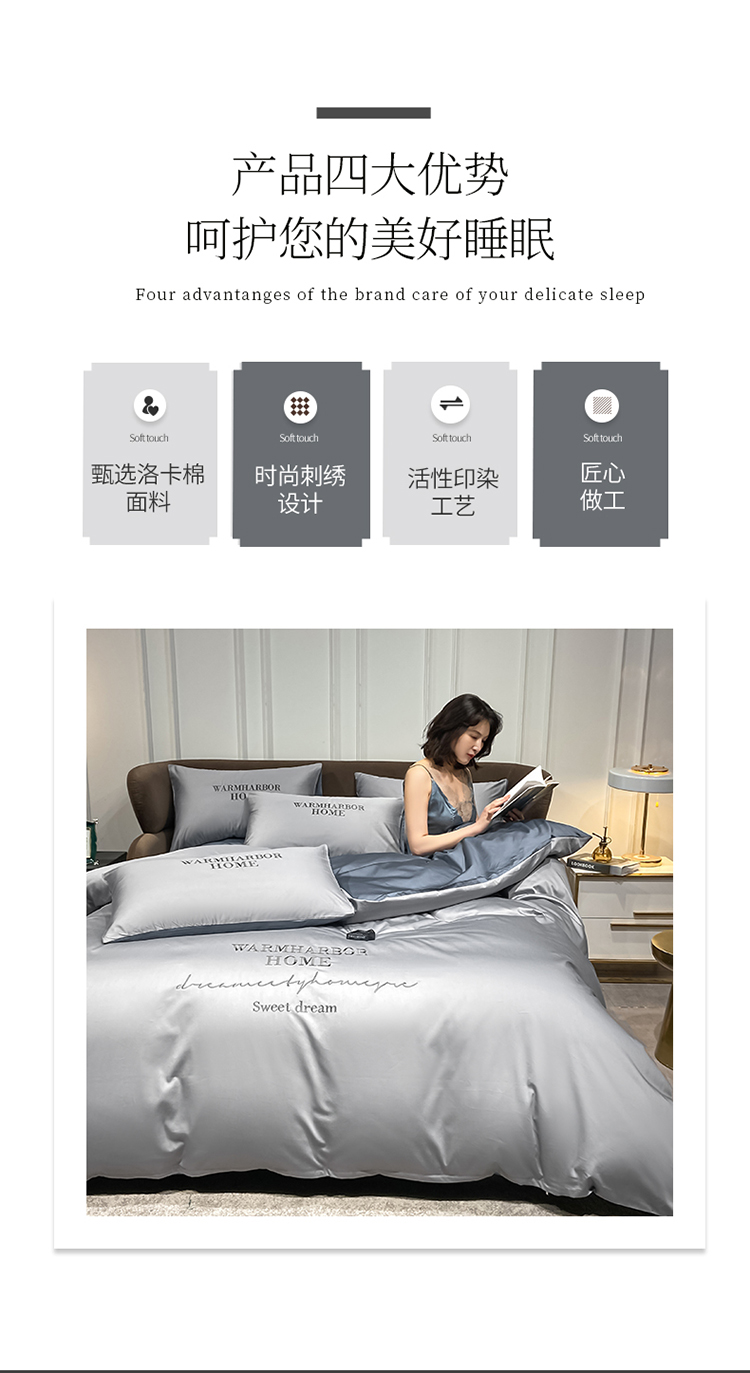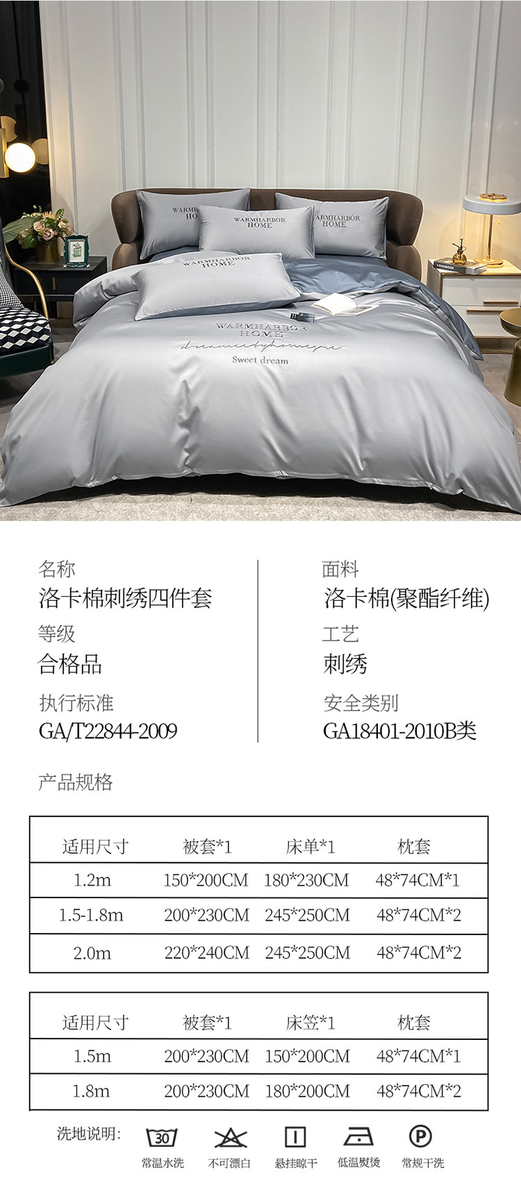 当前位置: 91家纺网 > 商品网购 > 床品套件 > 四件套 > 化纤活性四件套 > 欣晴 2021新款轻奢刺绣洛卡棉三件套四件套 轻奢-浅灰