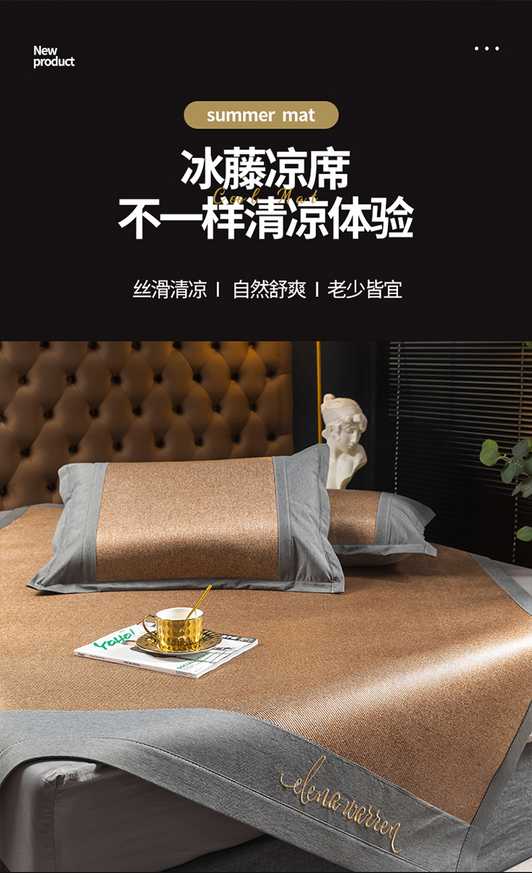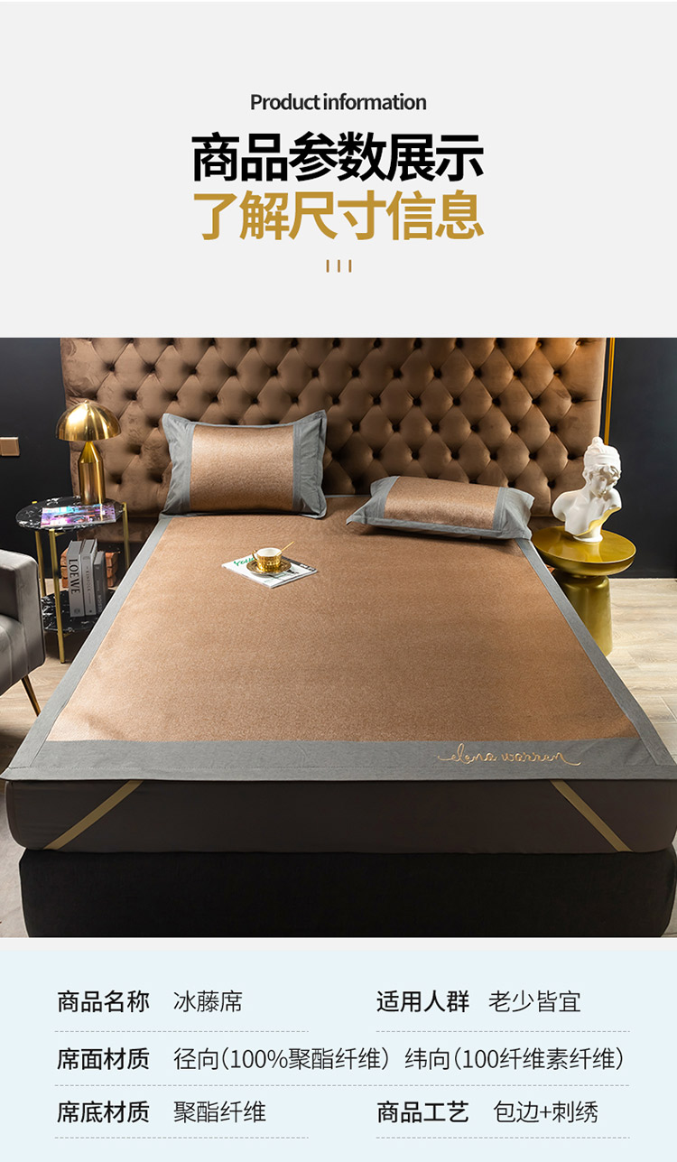 当前位置: 91家纺网 > 商品网购 > 床上用品 > 凉席 > 藤席 > 绒艺席业 2021新款加密冰藤英文绣花床单床笠款 咖色
