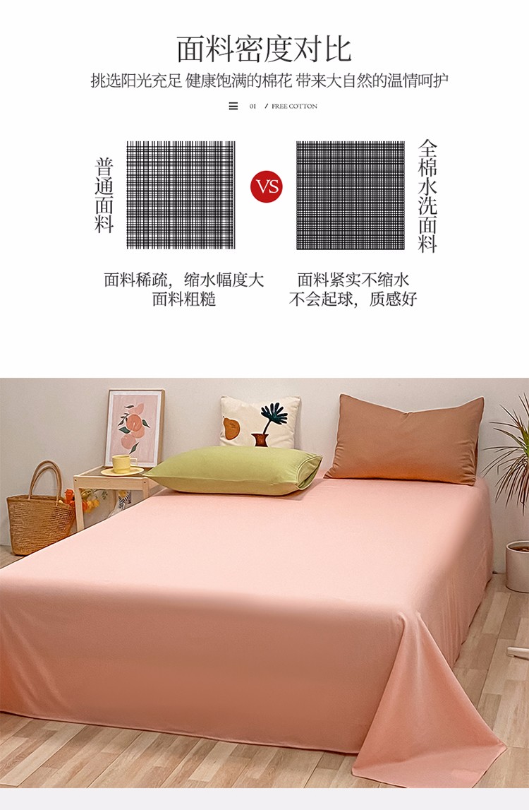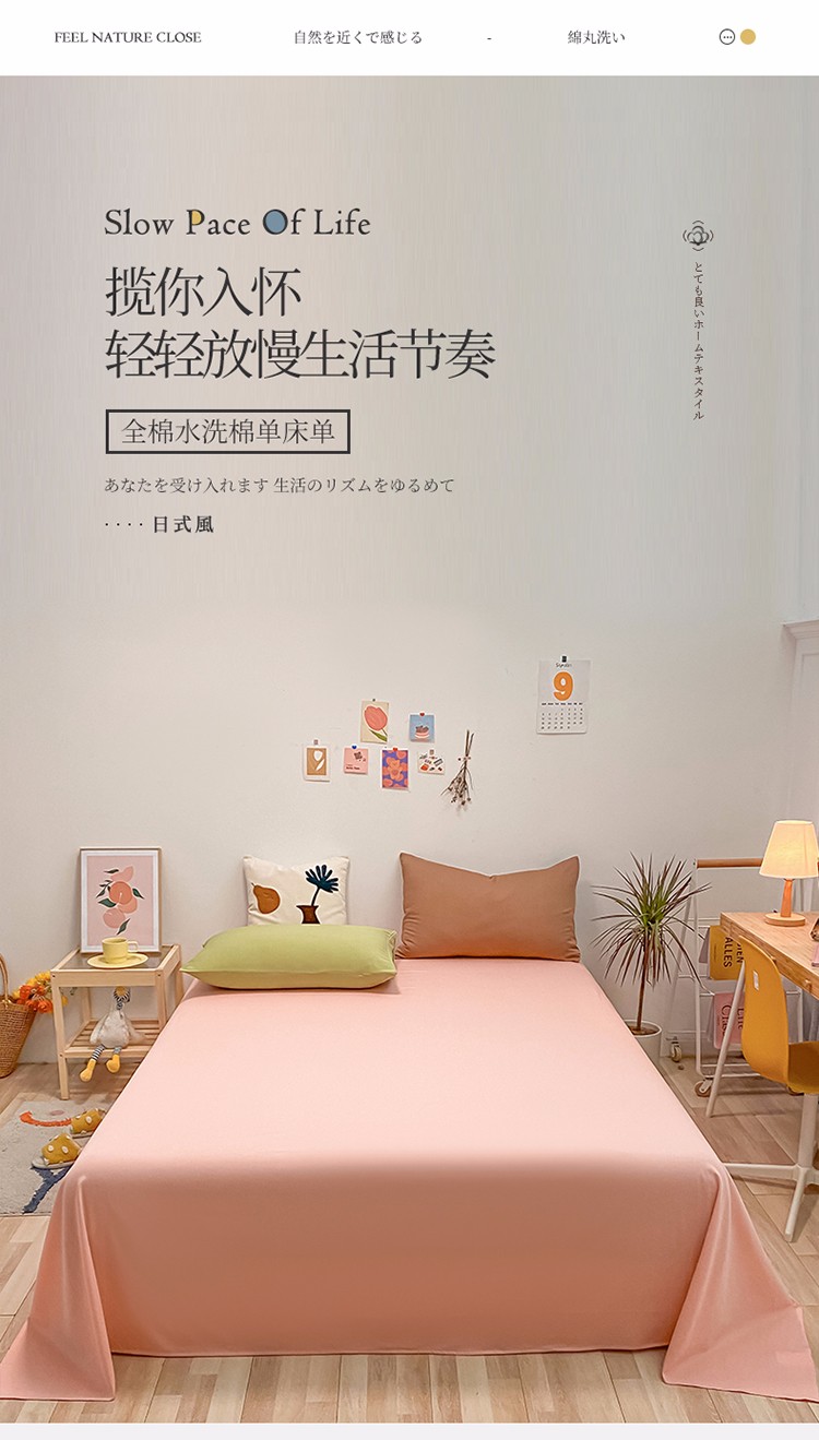 • 91家纺网 家纺一手货源 找家纺 蓝巢 2021新款全棉水洗棉混搭款单床单浅粉