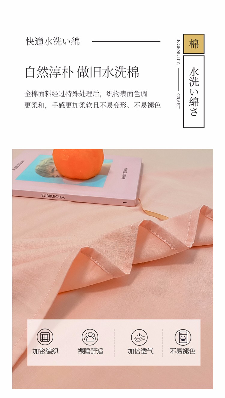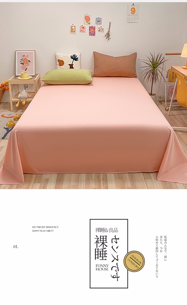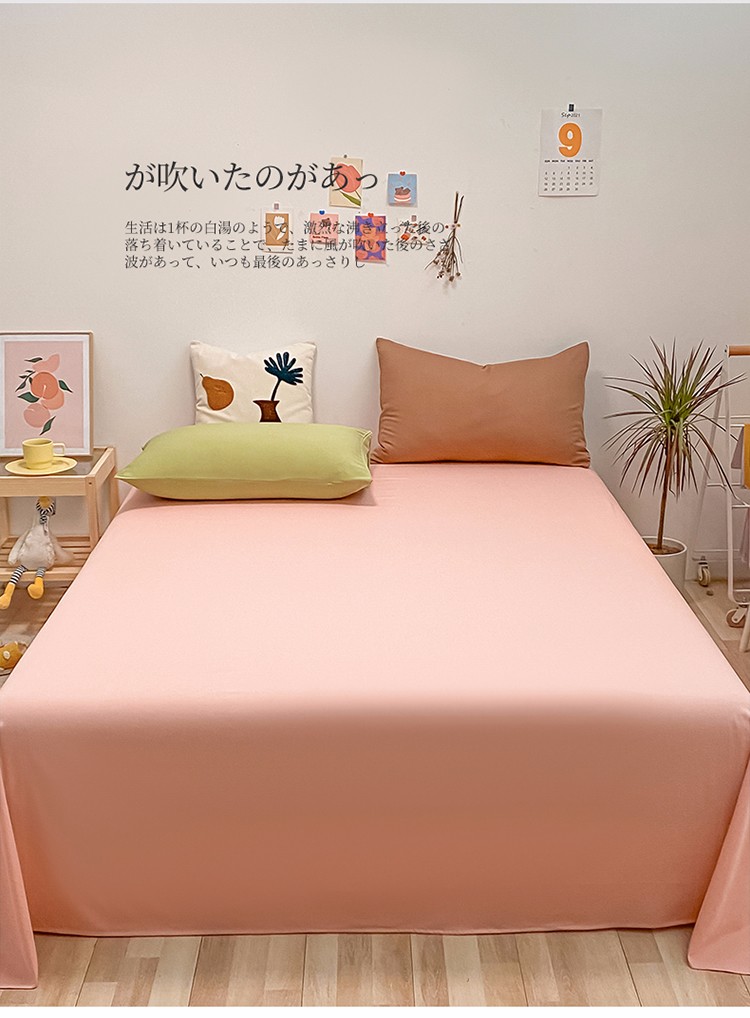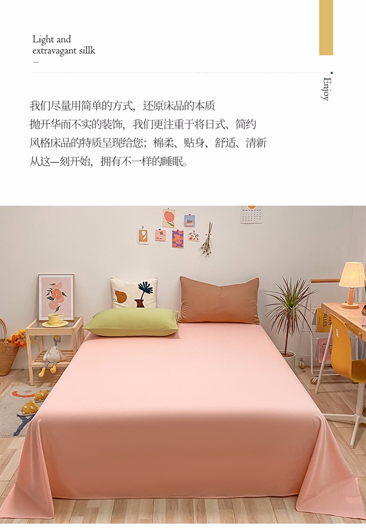 蓝巢 2021新款全棉水洗棉混搭款单床单浅粉
