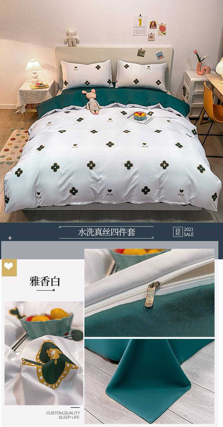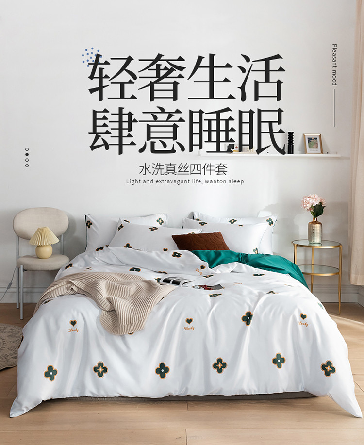 琪格格纺织 2022新款水洗真丝印花四件套 雅香白