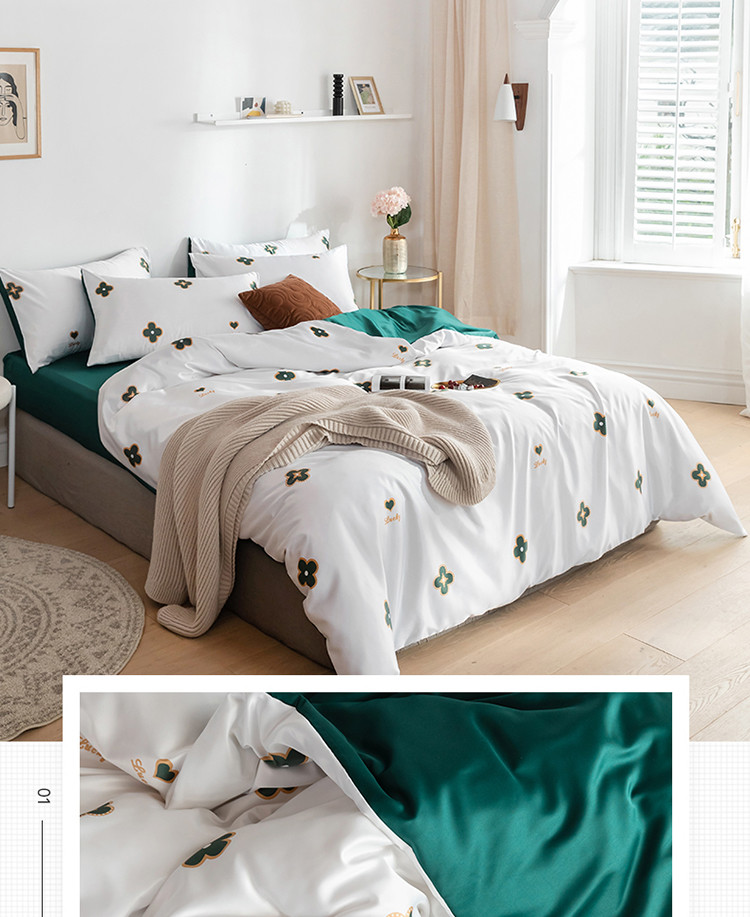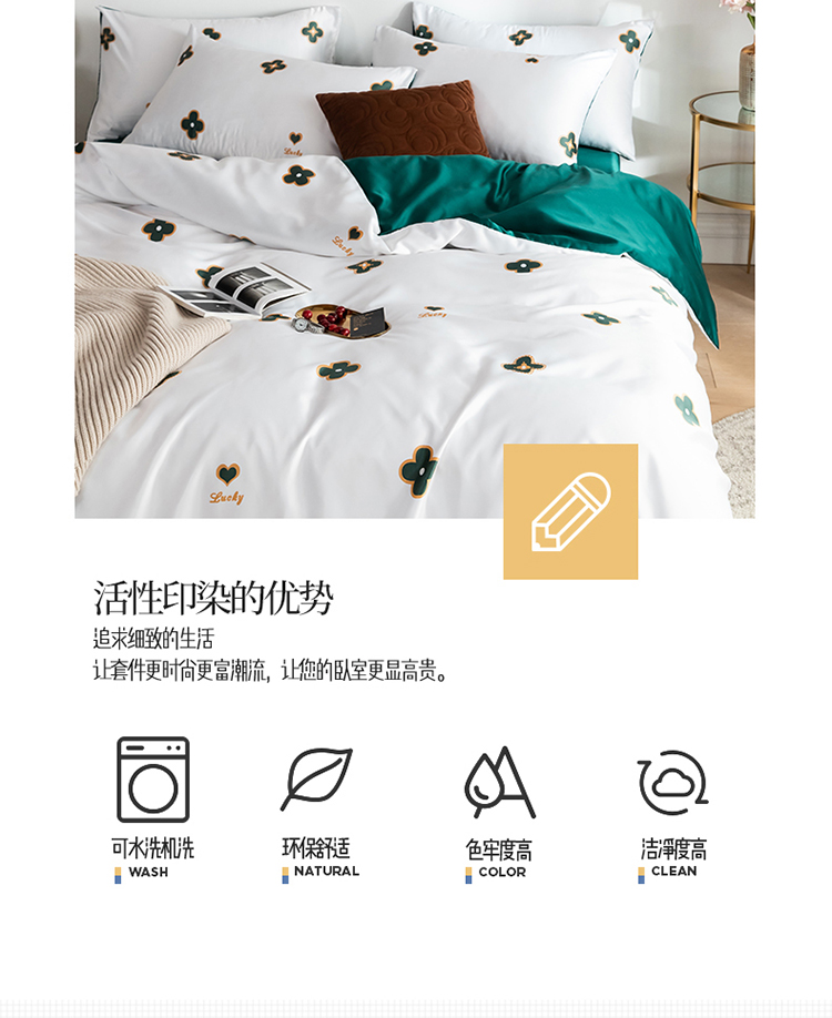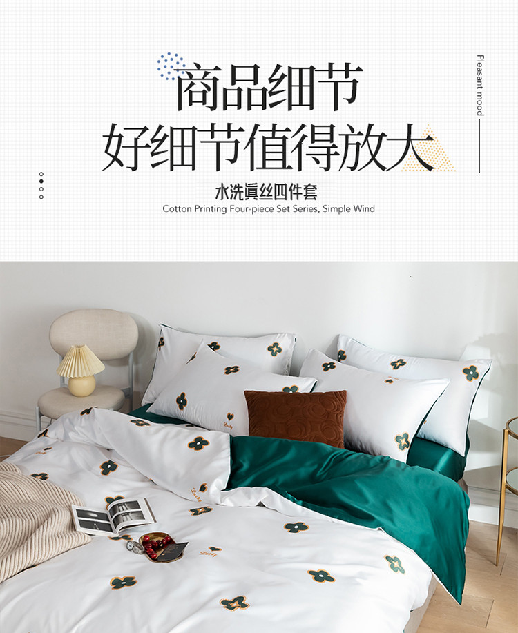 商品名称:琪格格纺织 2022新款水洗真丝印花四件套 雅香白