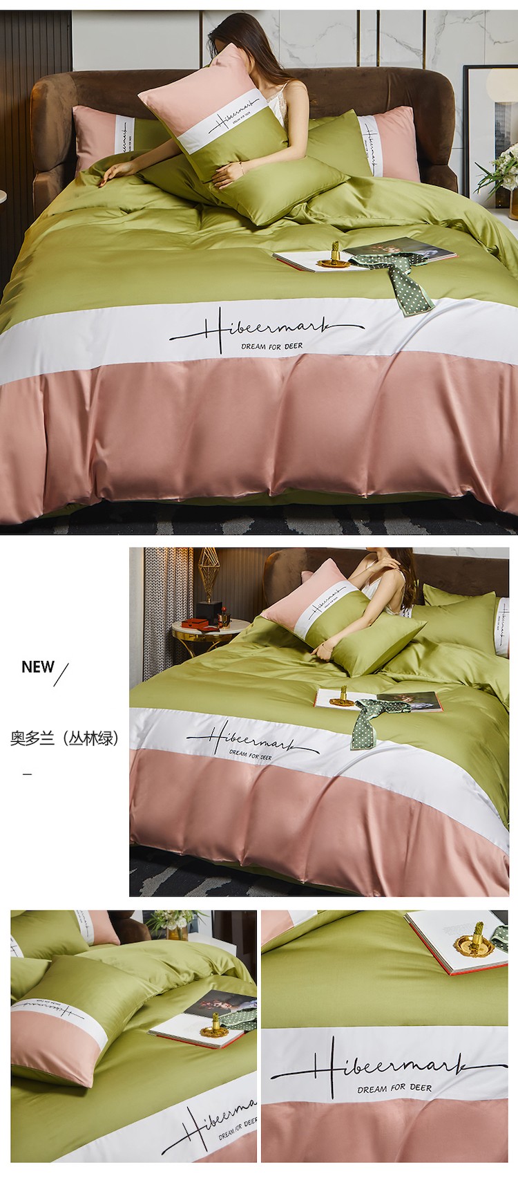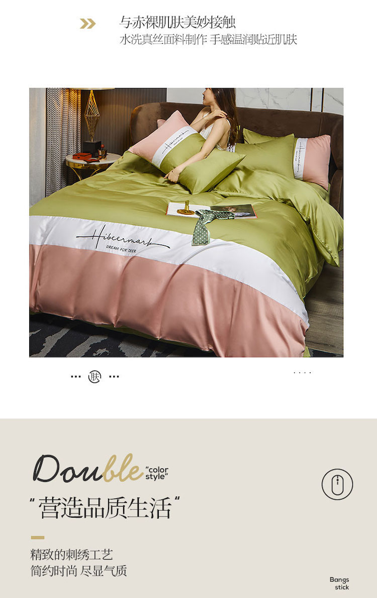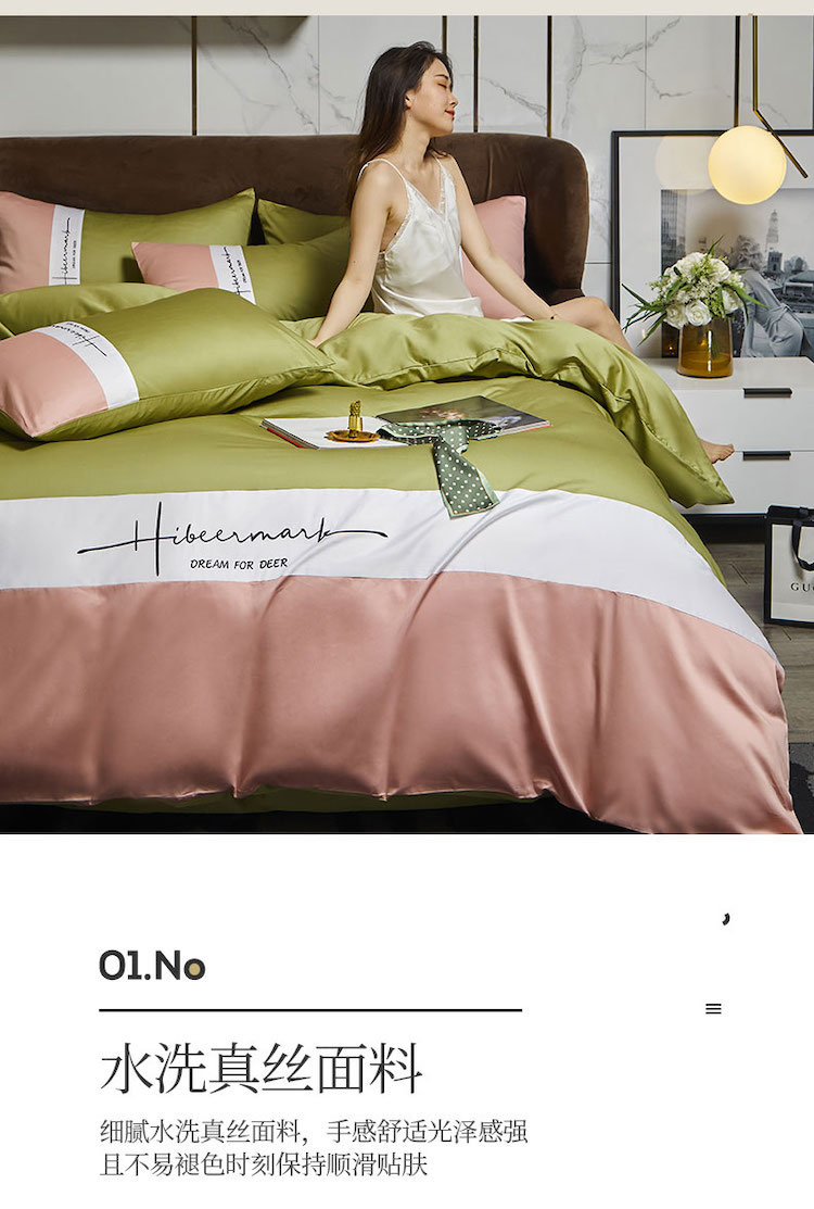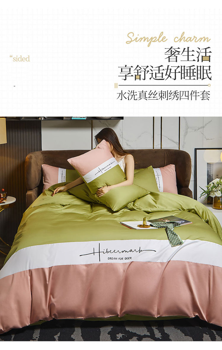 凡客 2021春夏新款水洗真丝三拼绣花四件套-奥兰多 丛林绿
