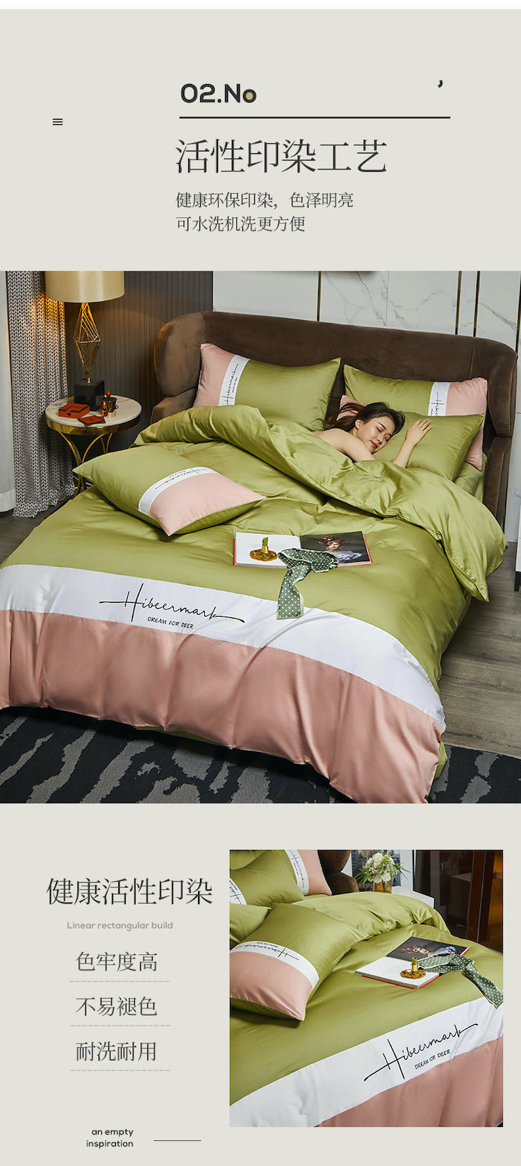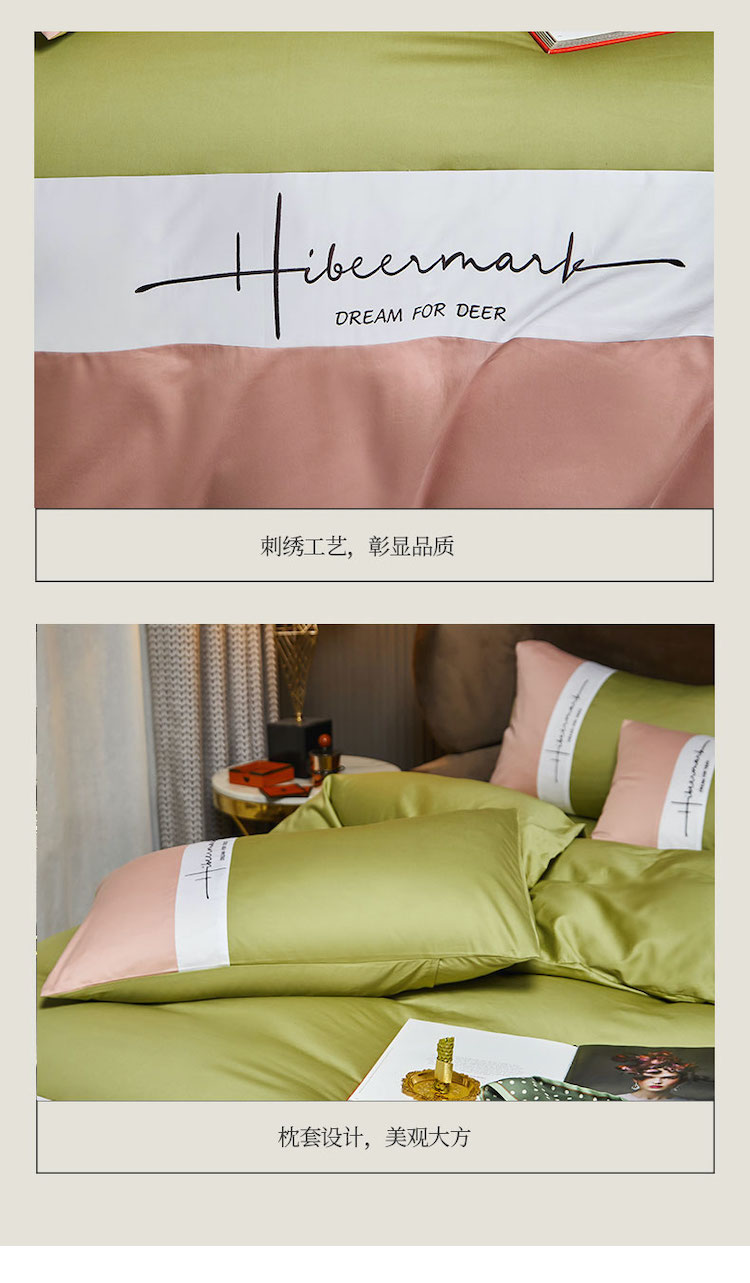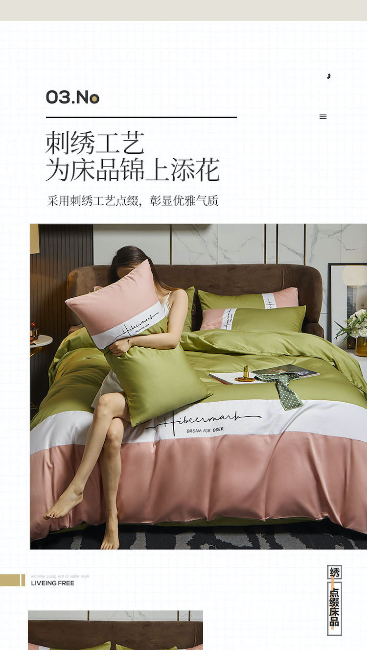 凡客 2021春夏新款水洗真丝三拼绣花四件套-奥兰多 丛林绿