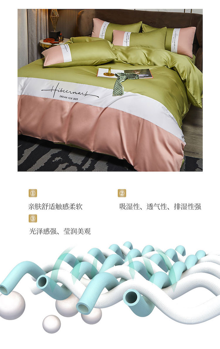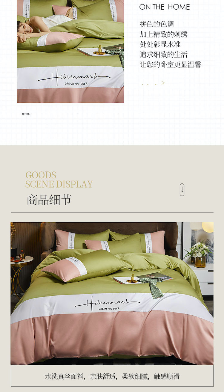 商品名称:凡客 2021春夏新款水洗真丝三拼绣花四件套-奥兰多 丛林绿