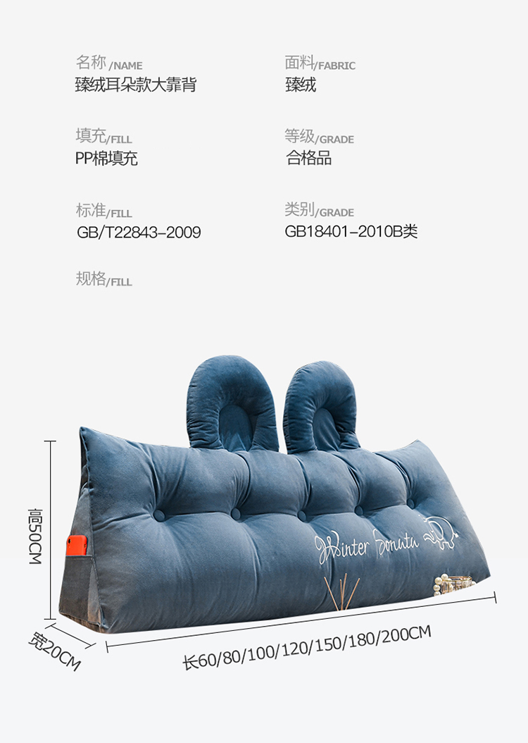 商品名称:一兰家纺 2021新款臻绒大耳朵靠垫大靠背 藏青