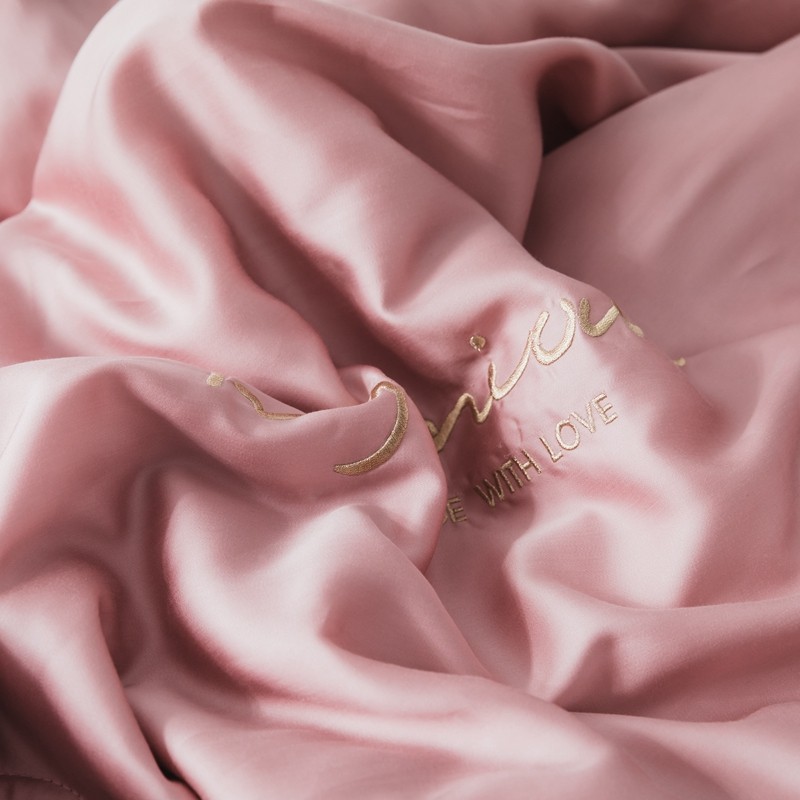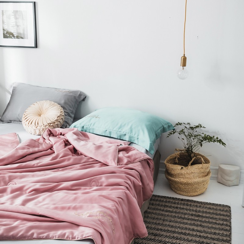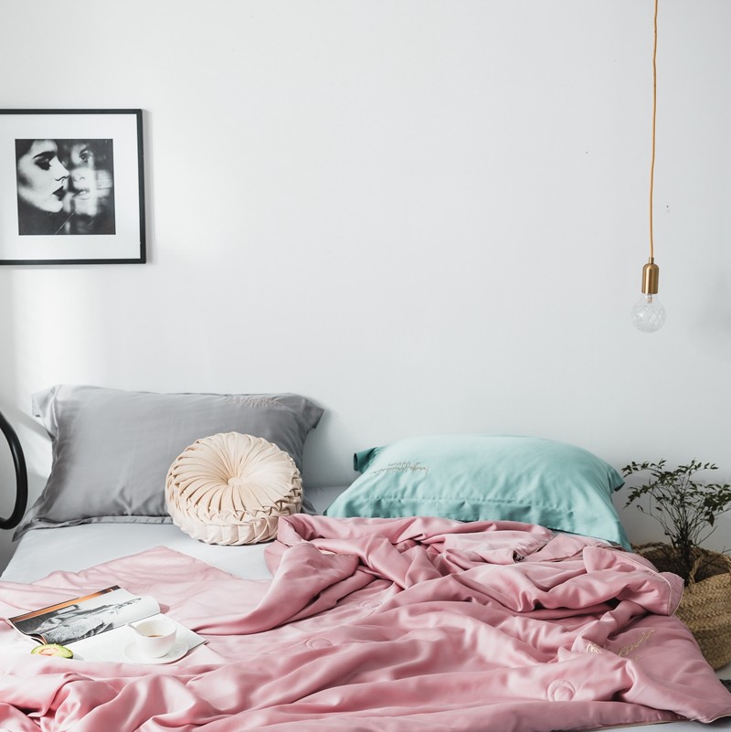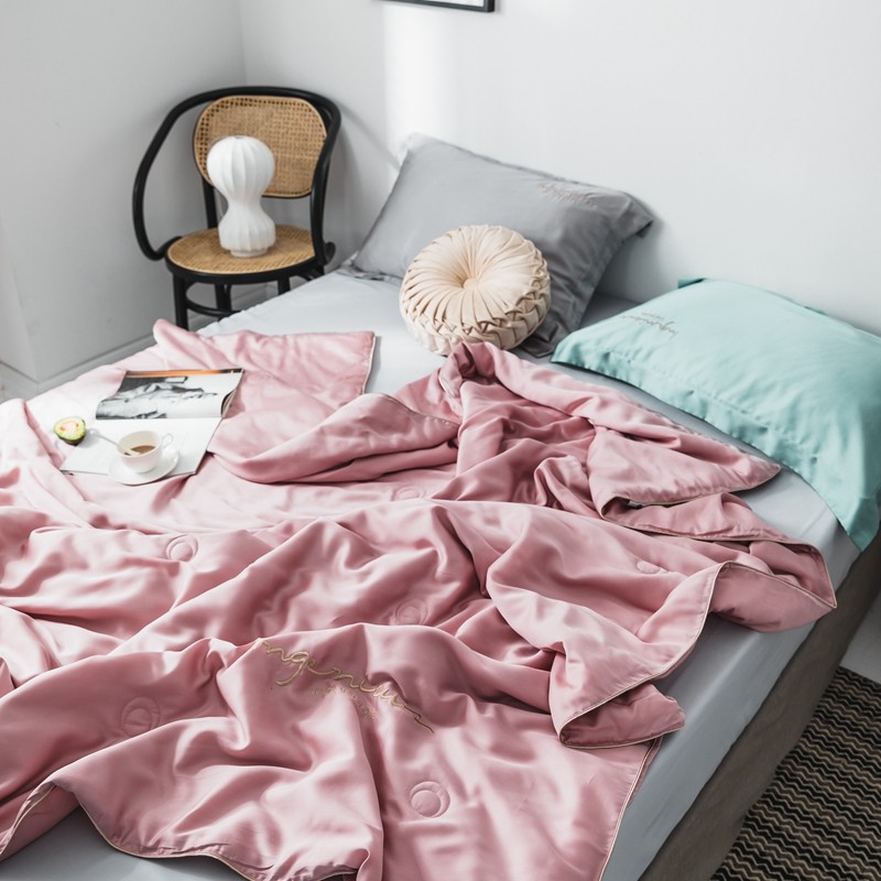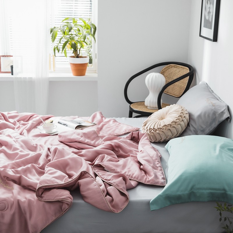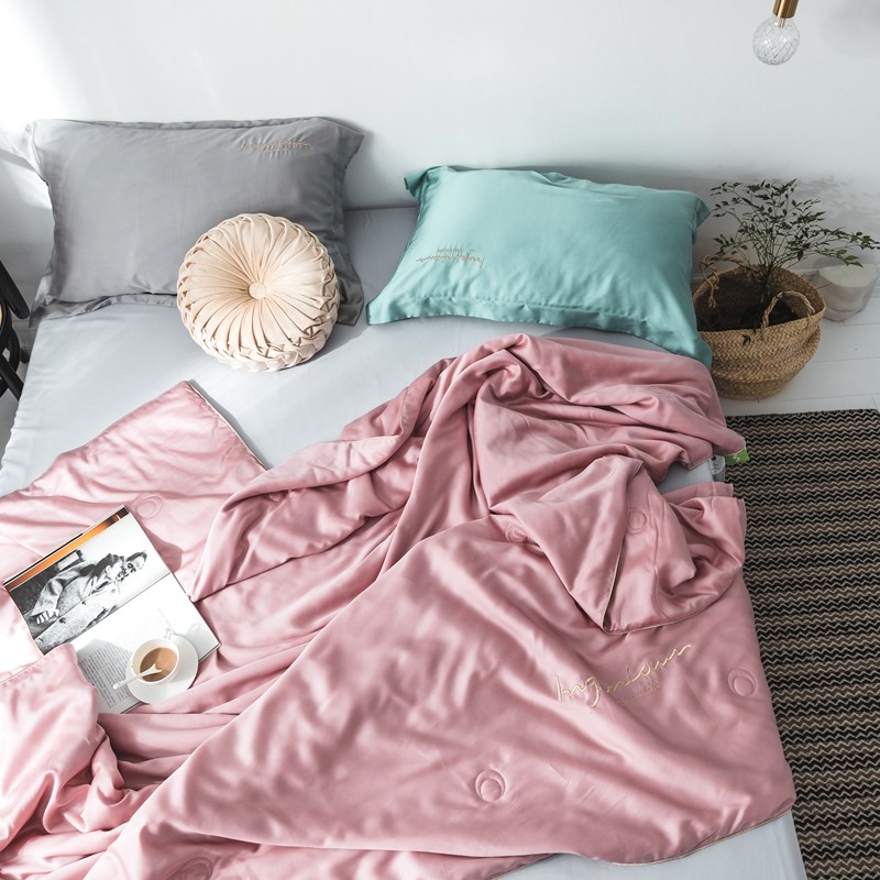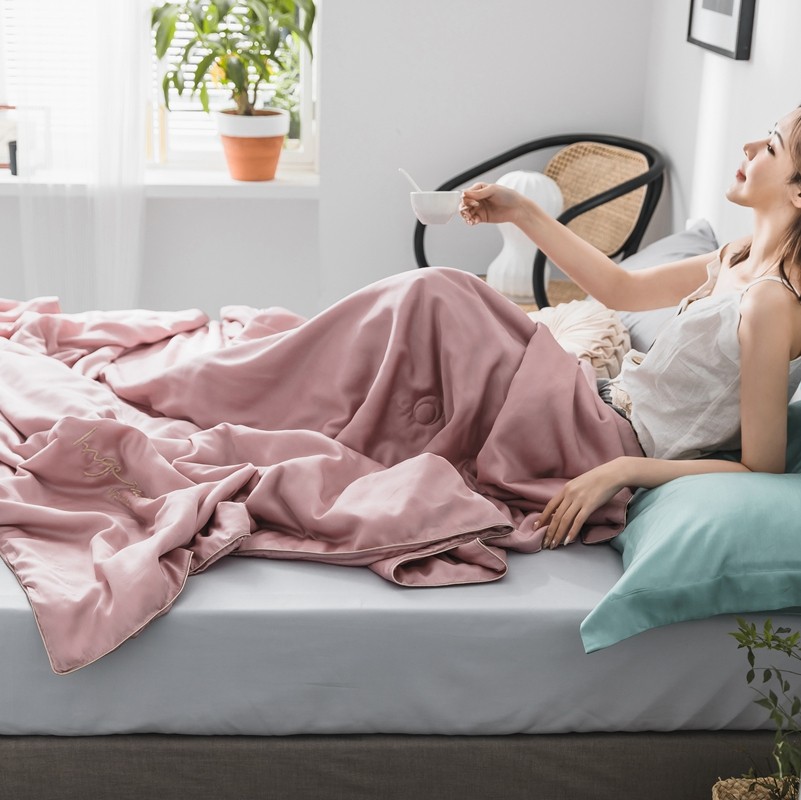 丽笙 2021新款60兰精天丝素色刺绣系列夏被 珊瑚粉