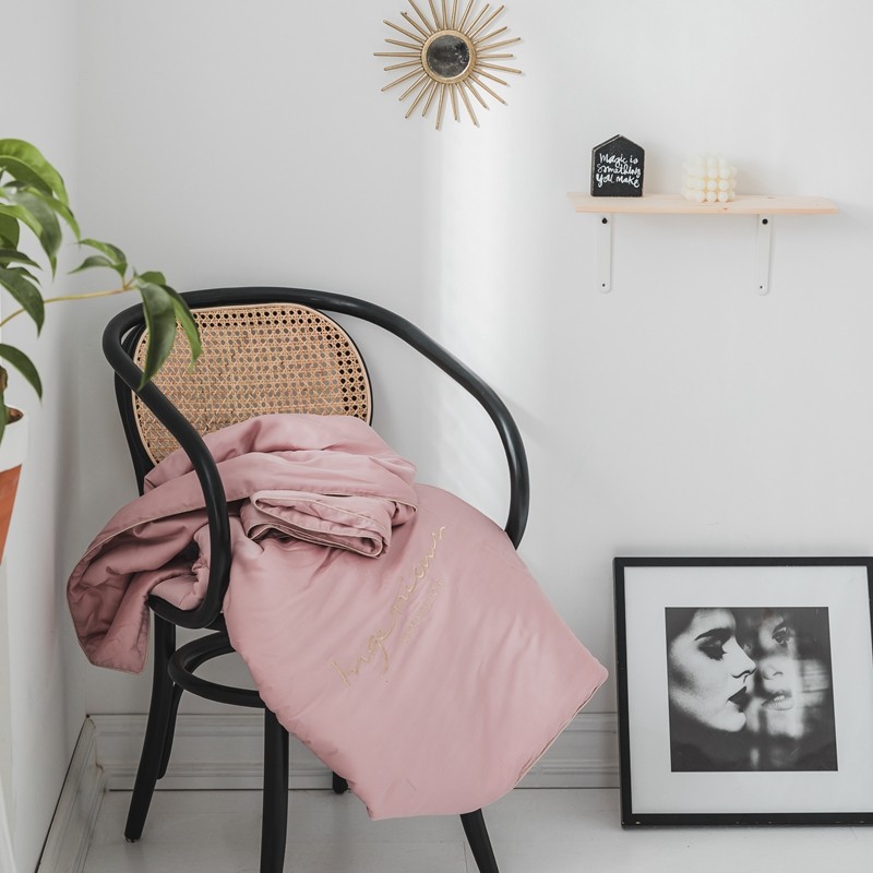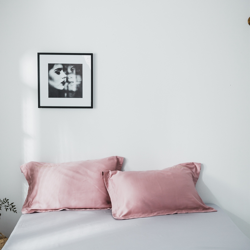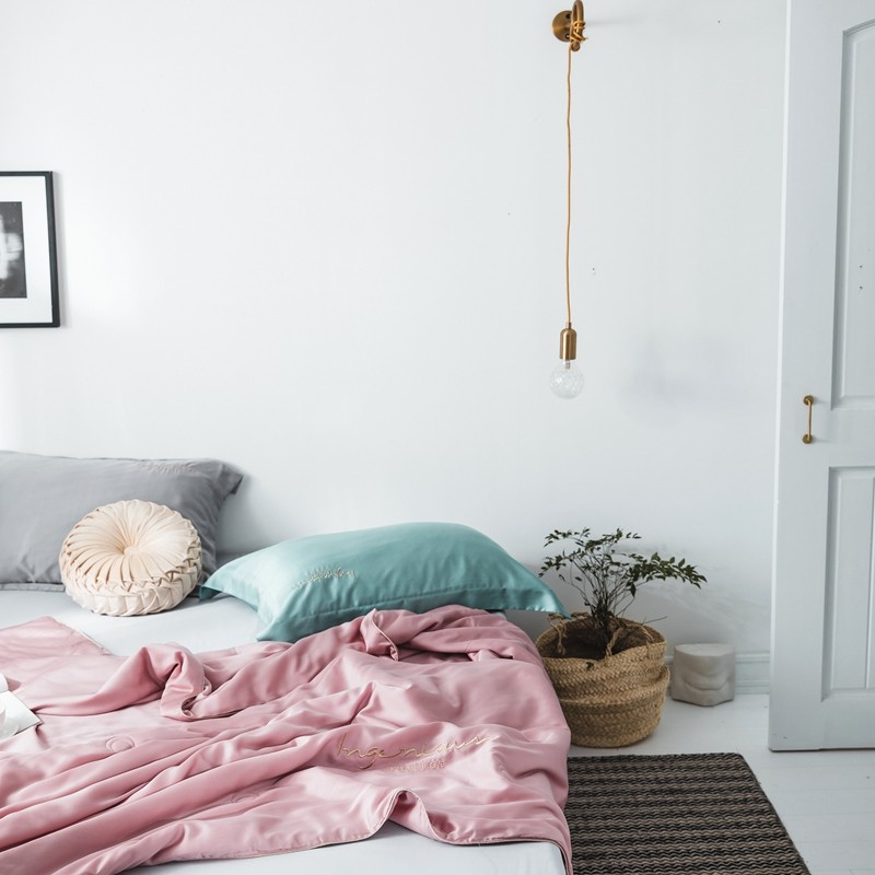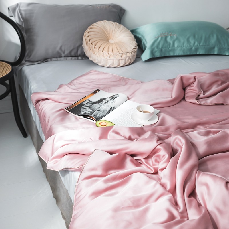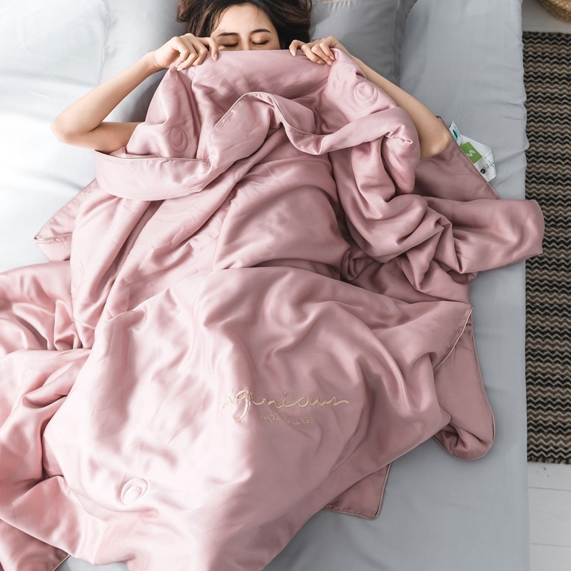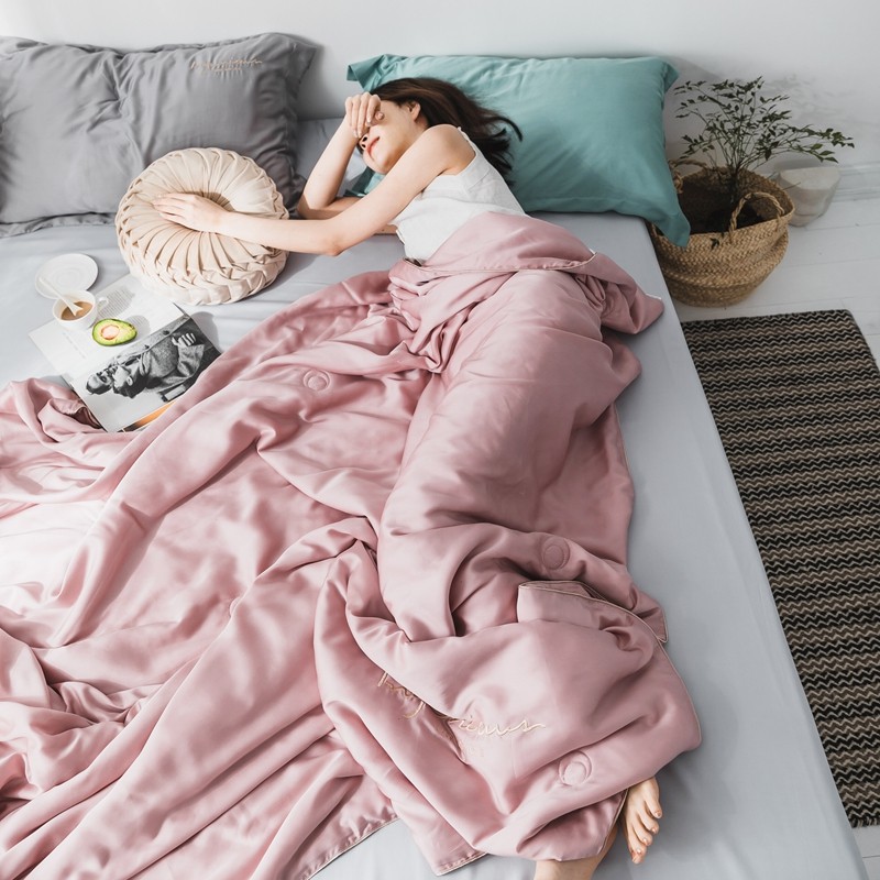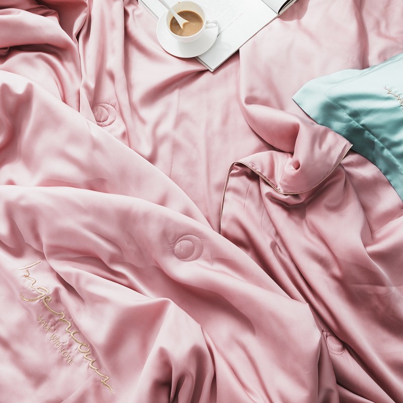 丽笙 2021新款60兰精天丝素色刺绣系列夏被 珊瑚粉