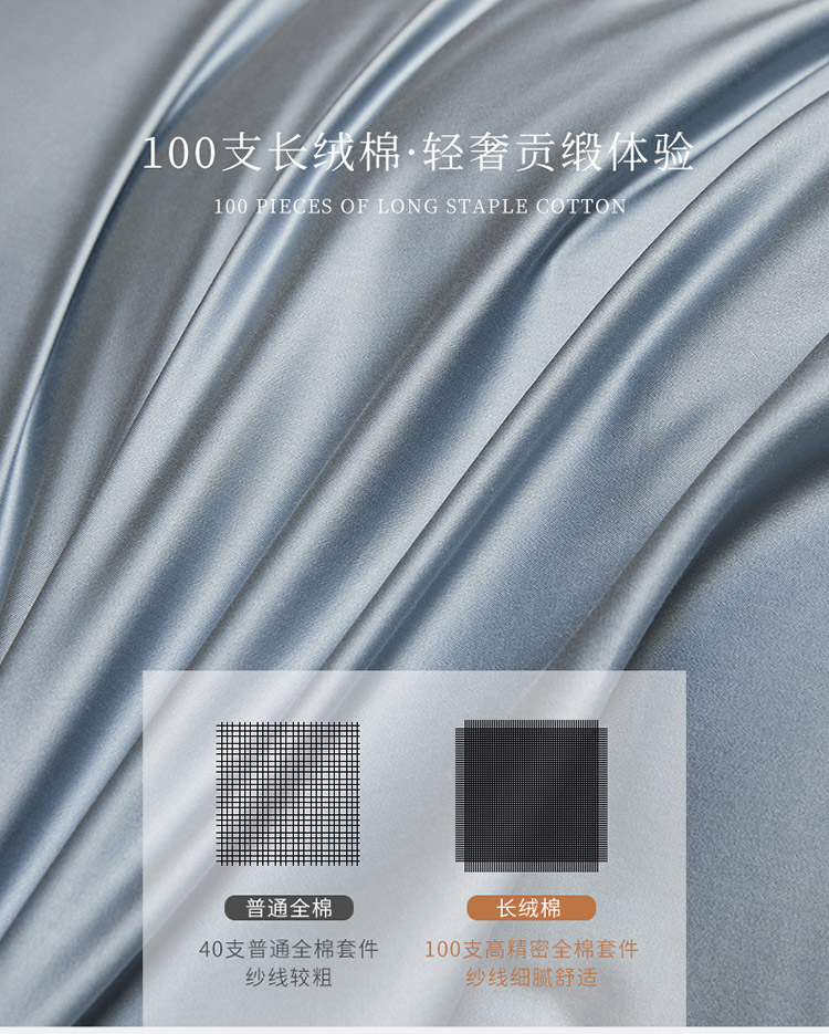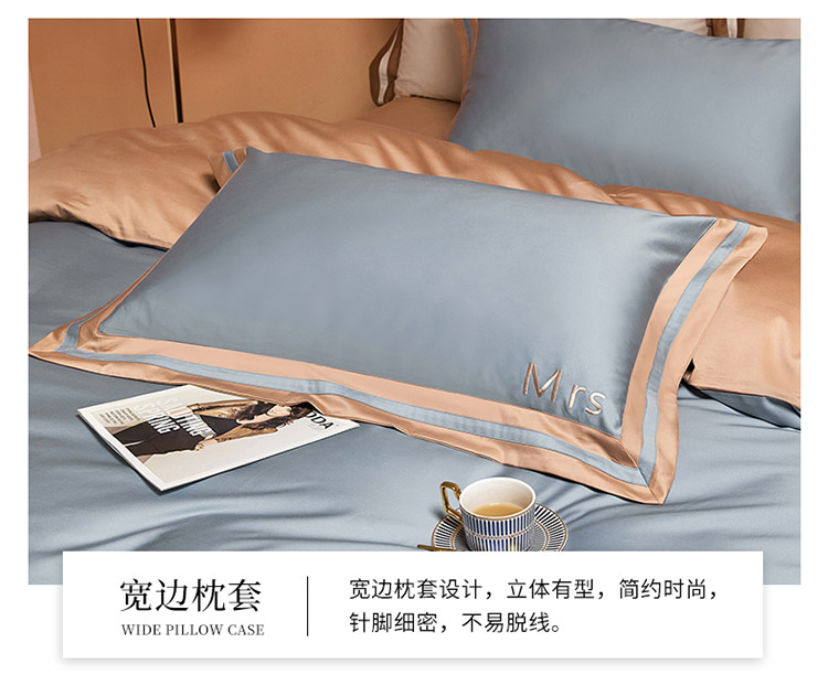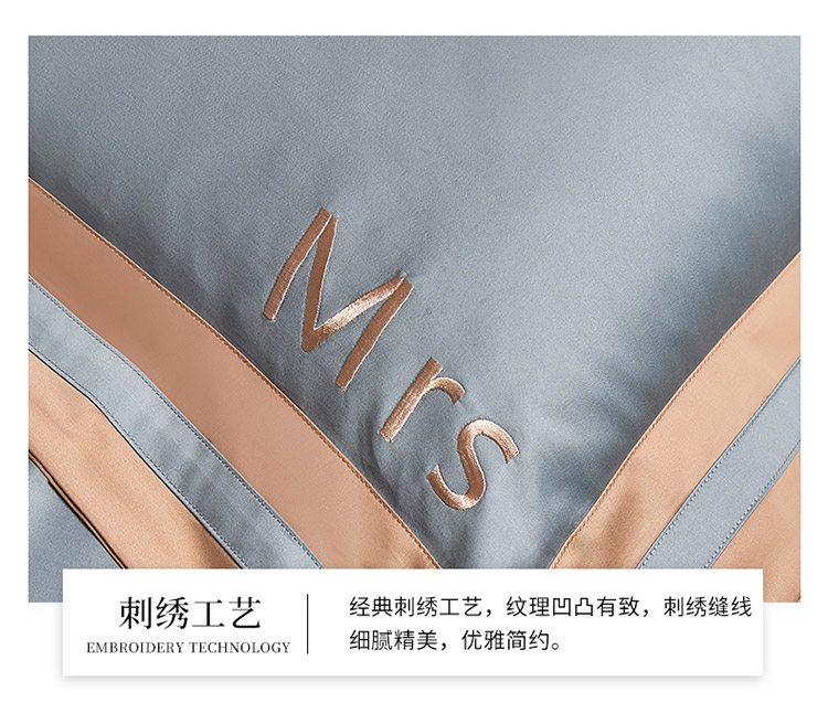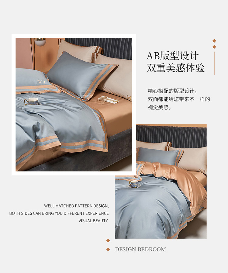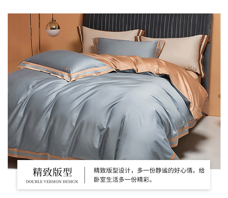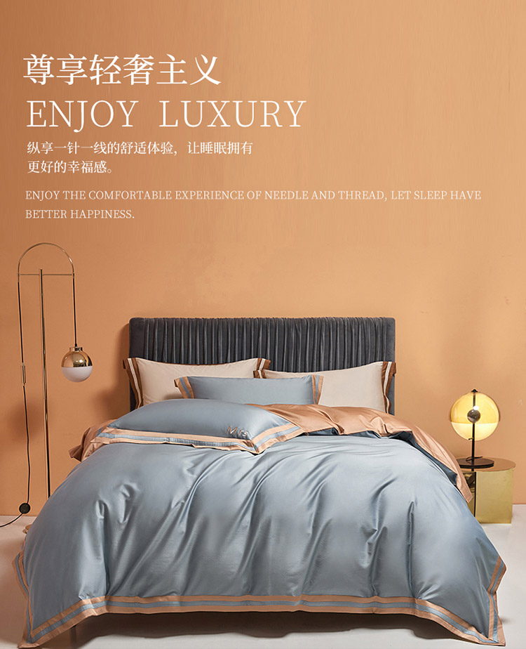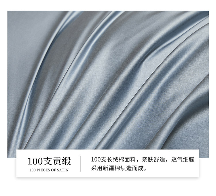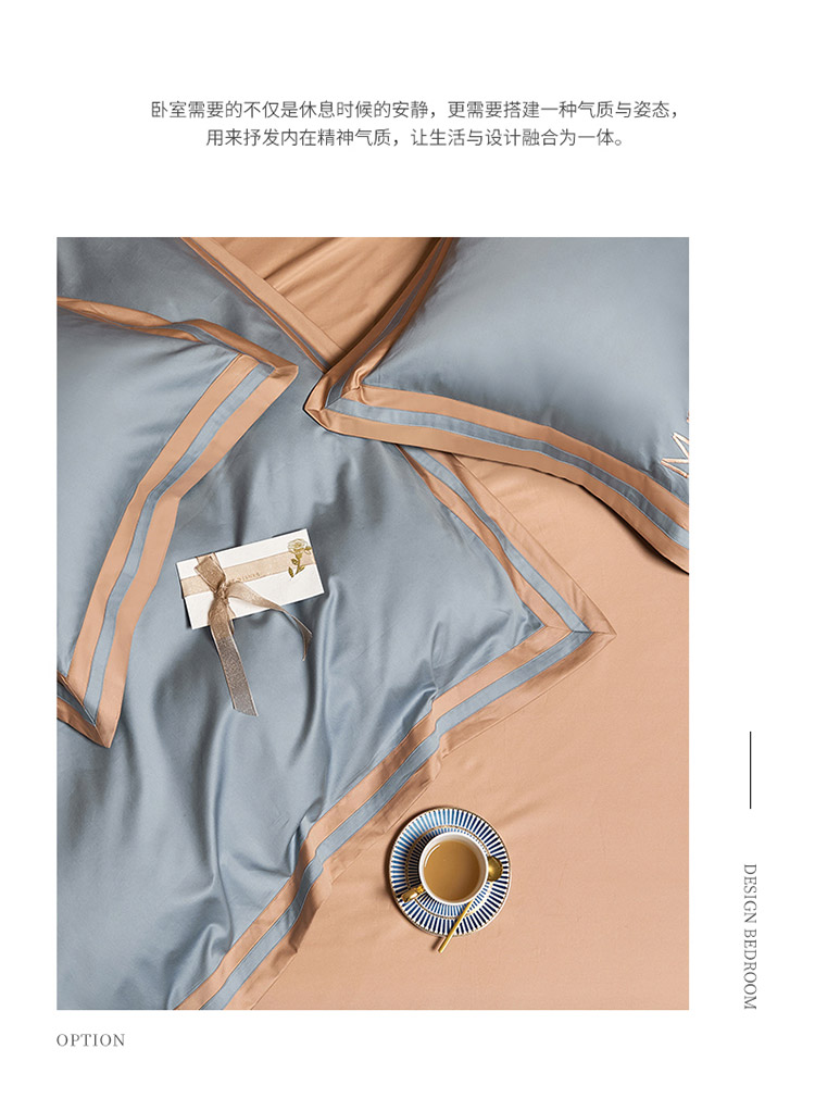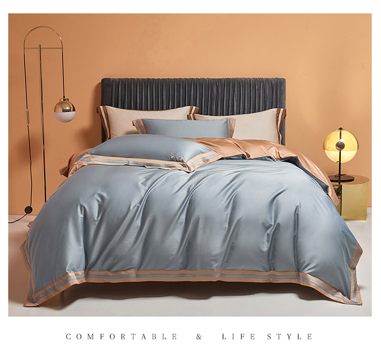 爱缦 2021新款简系列100支长绒棉奥棉四件套棚拍图 蓝灰-杏仁色