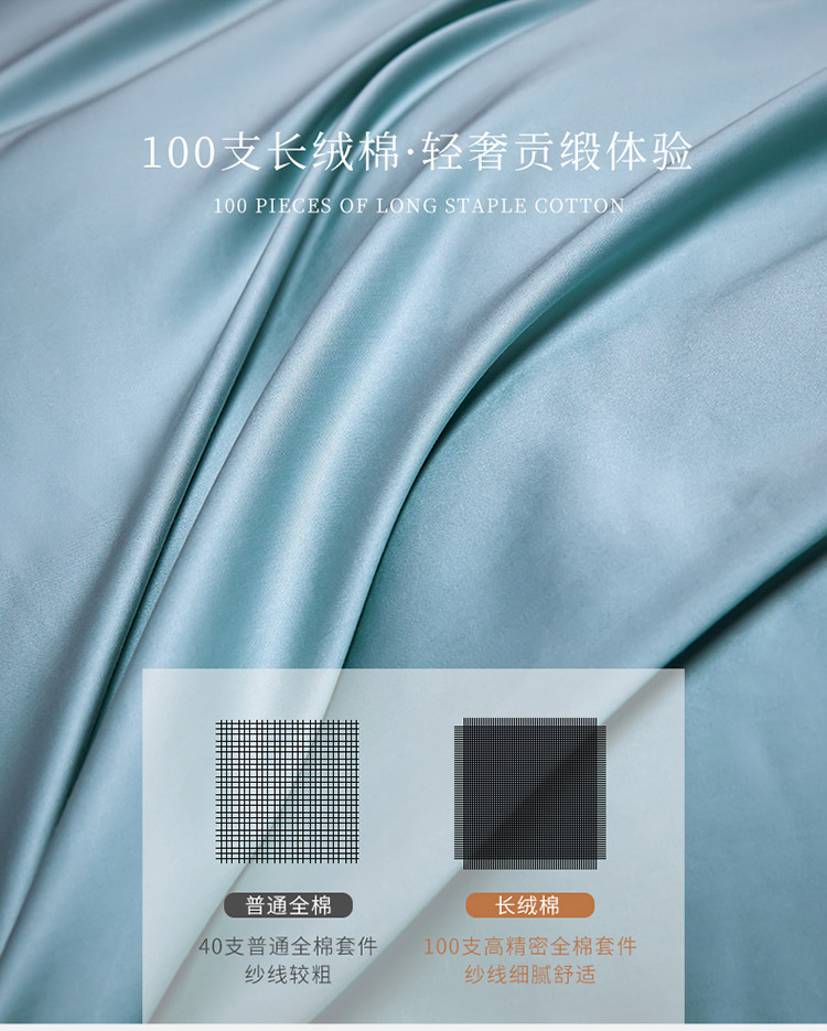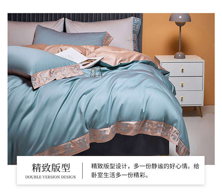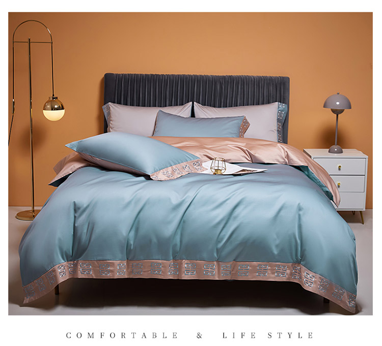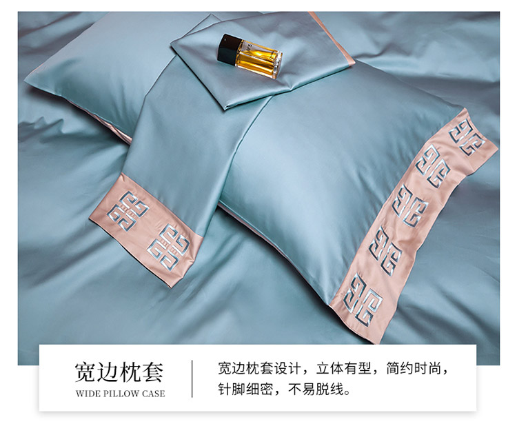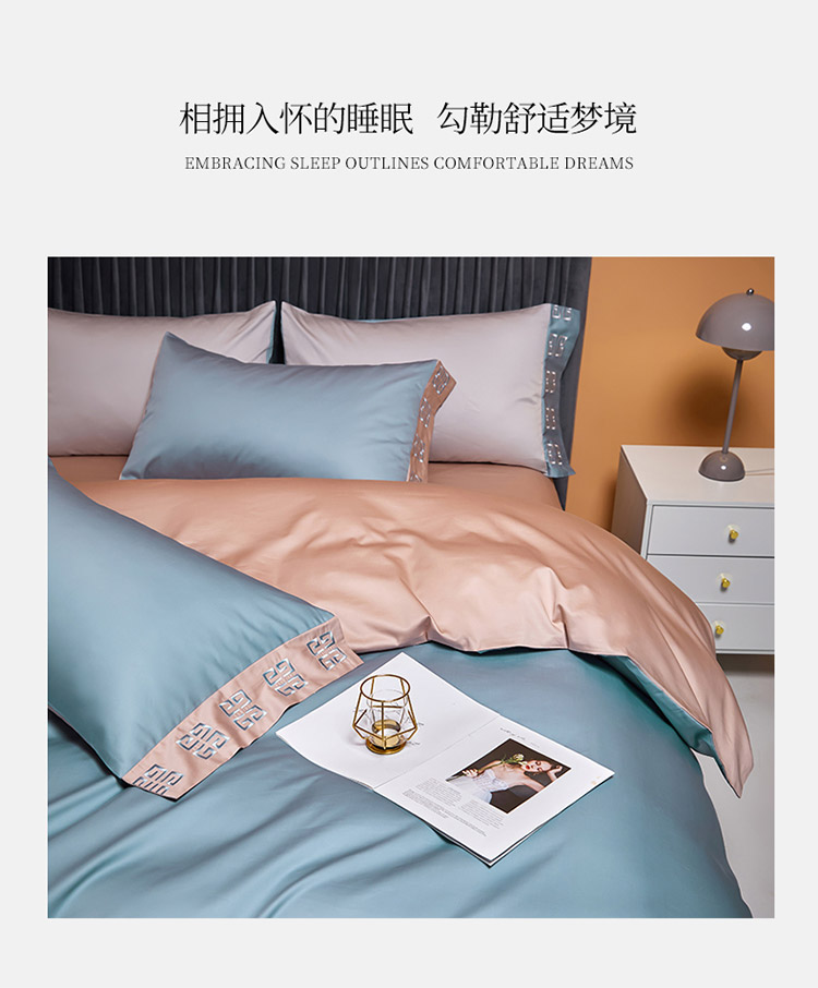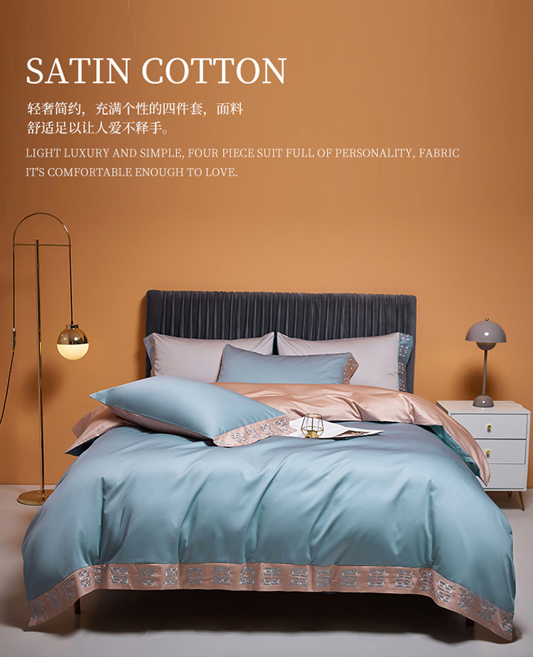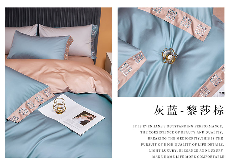 商品名称:爱缦2021宫系列100支长绒棉奥棉四件套棚拍图灰蓝黎莎棕