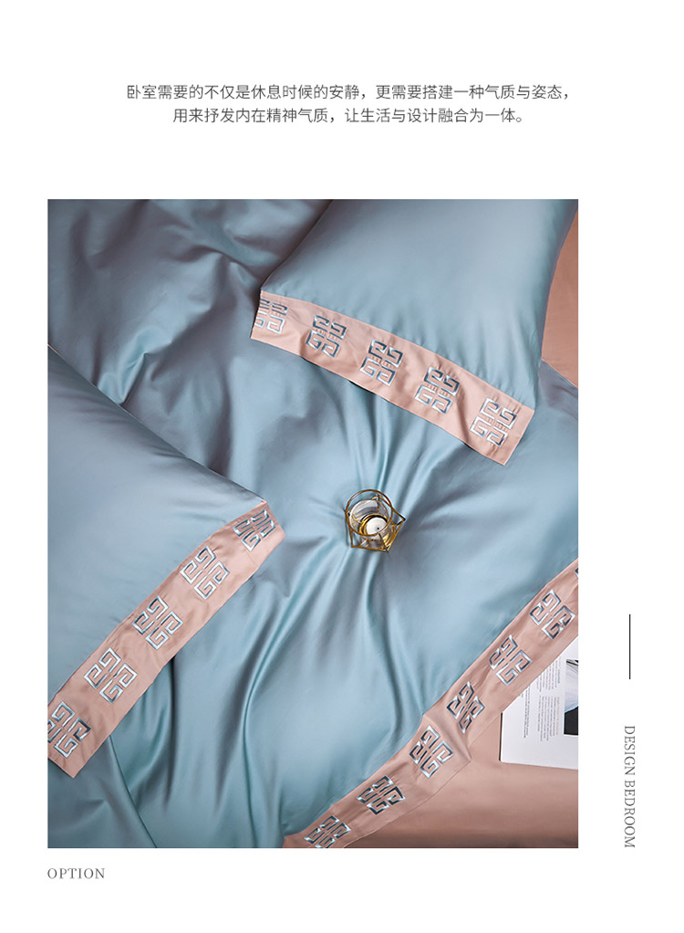 爱缦2021宫系列100支长绒棉奥棉四件套棚拍图灰蓝黎莎棕