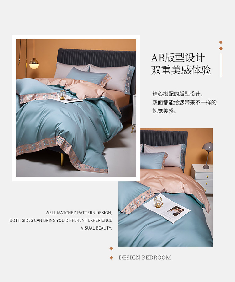 (总)爱缦 2025新款100支新疆长绒棉刺绣四件套-时光系列,时光-薄荷青,时光-芙蓉粉,时光-元气白桃