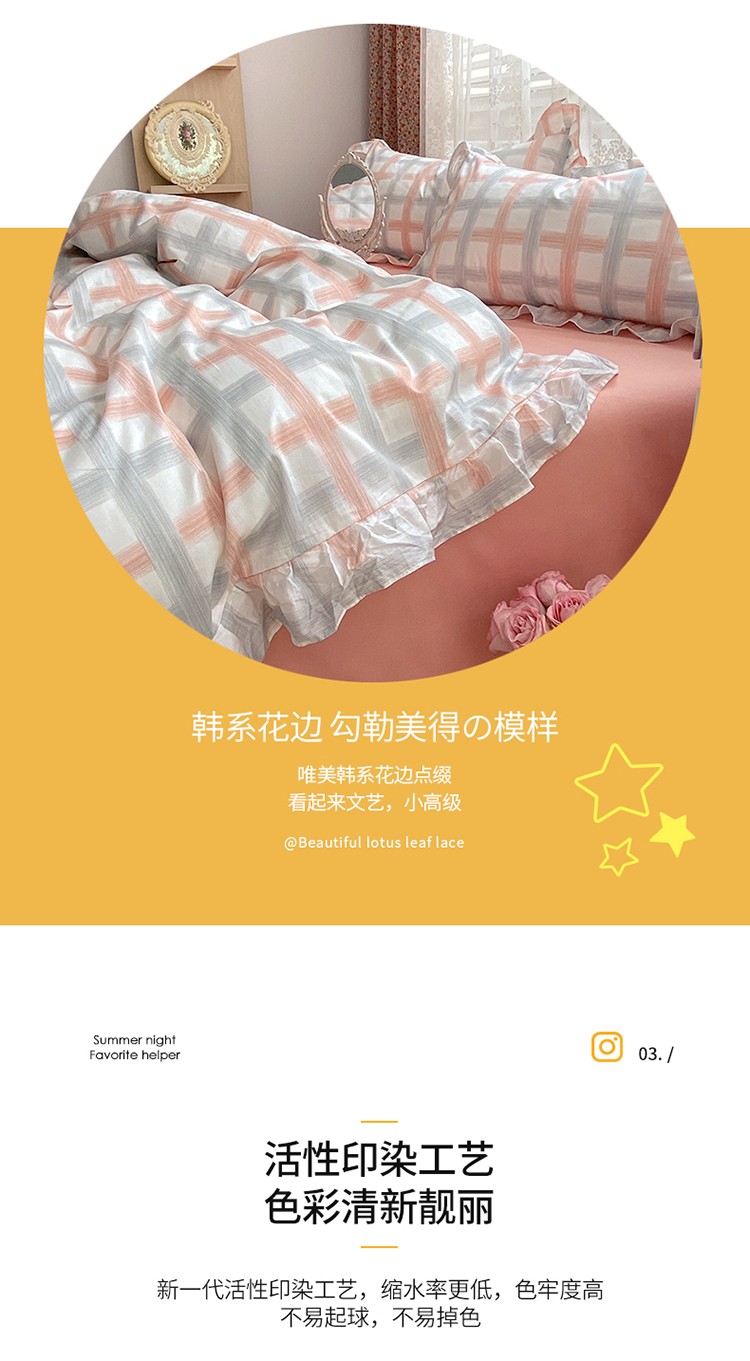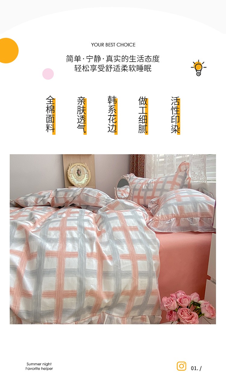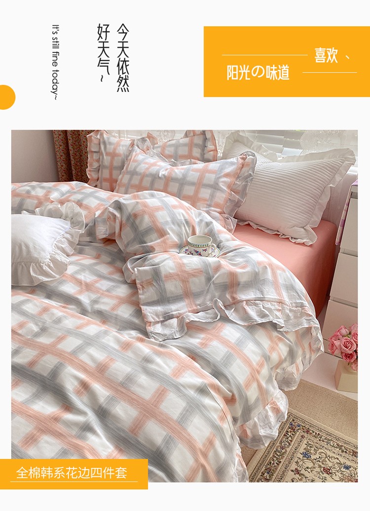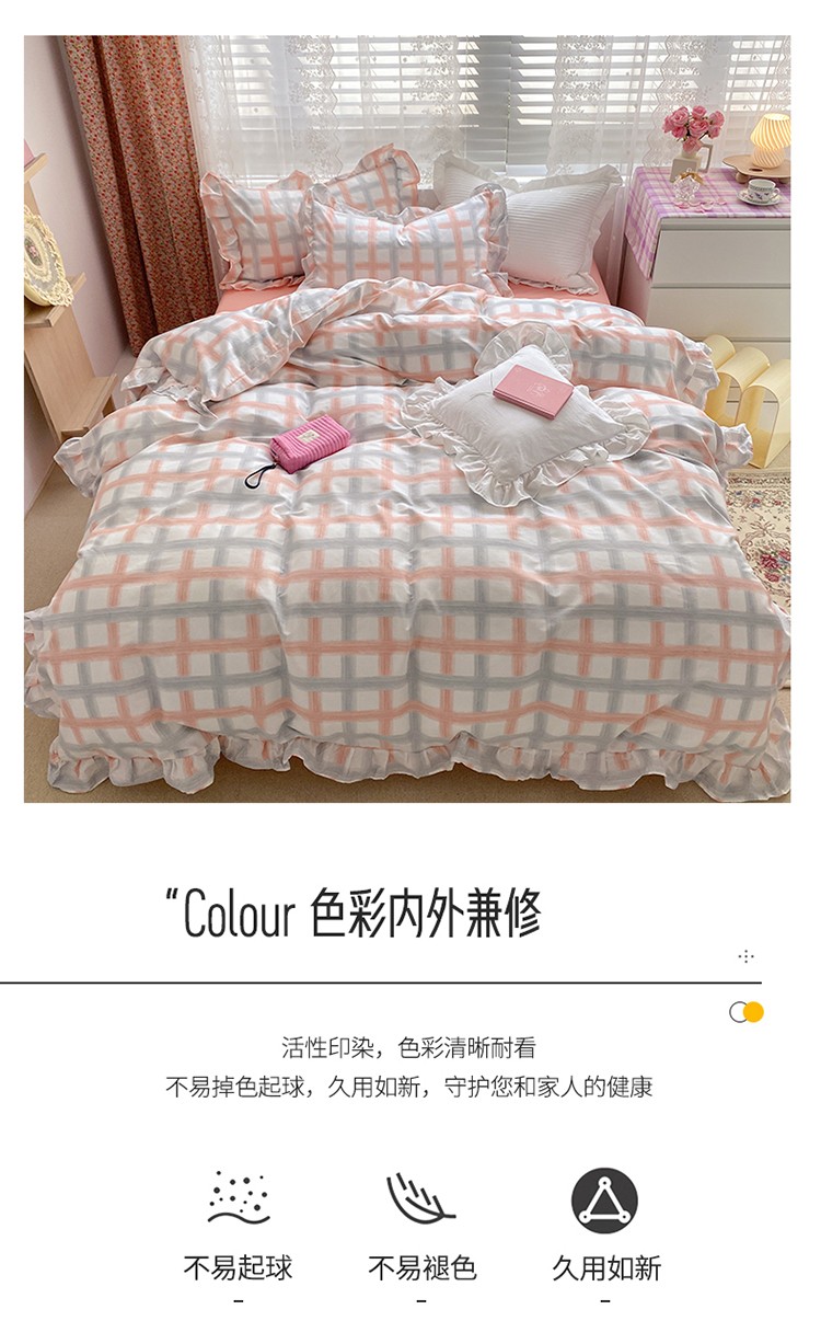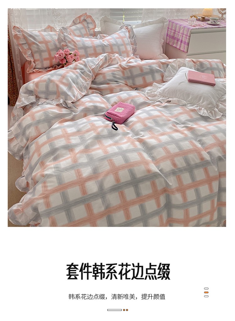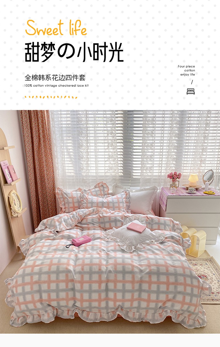 商品名称:雅居纺 2022新款全棉韩版花边四件套 粉韵