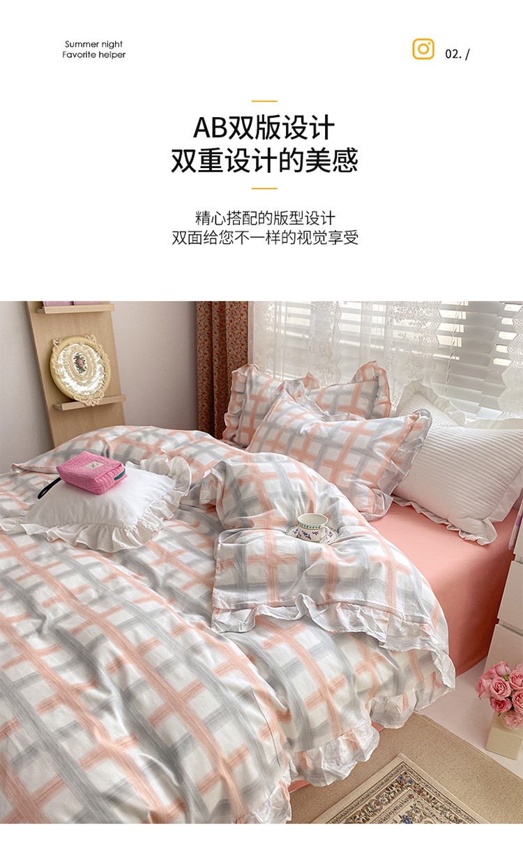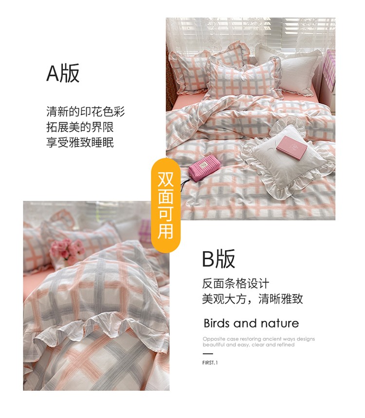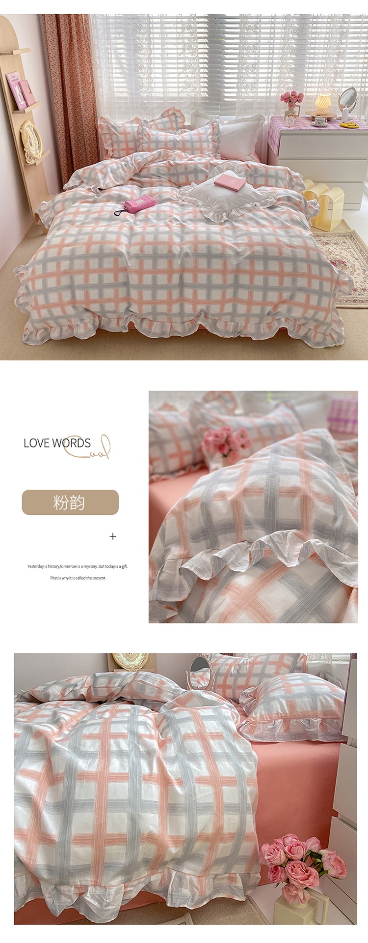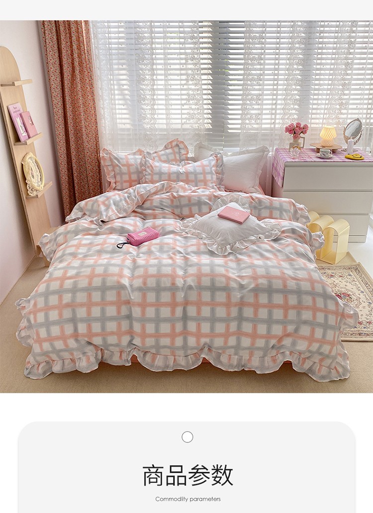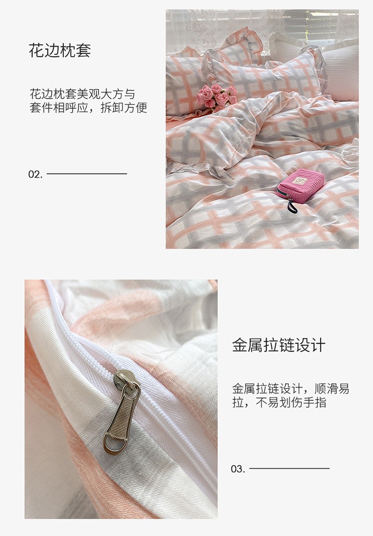 商品名称:雅居纺 2022新款全棉韩版花边四件套 粉韵