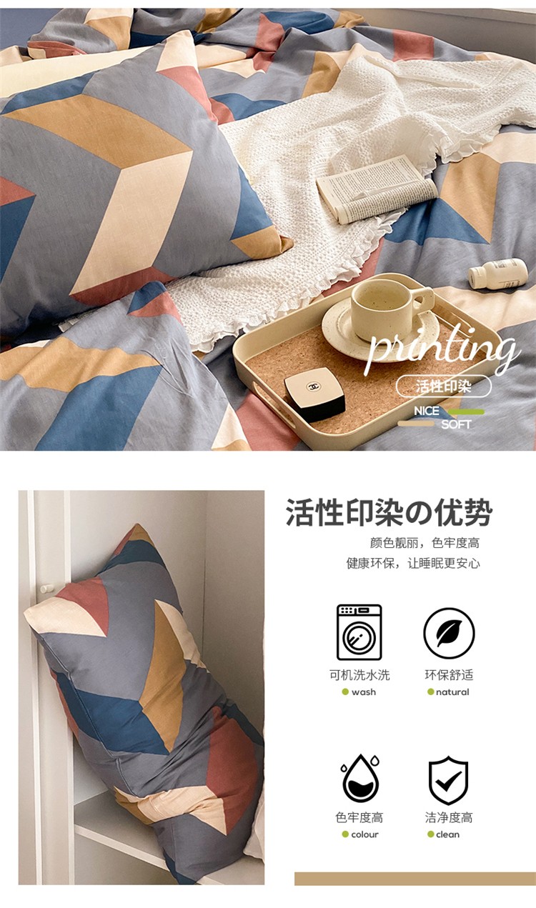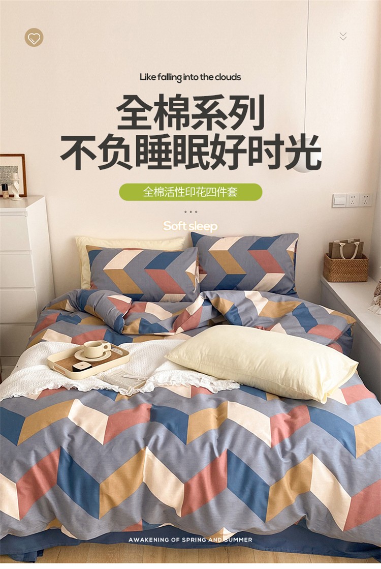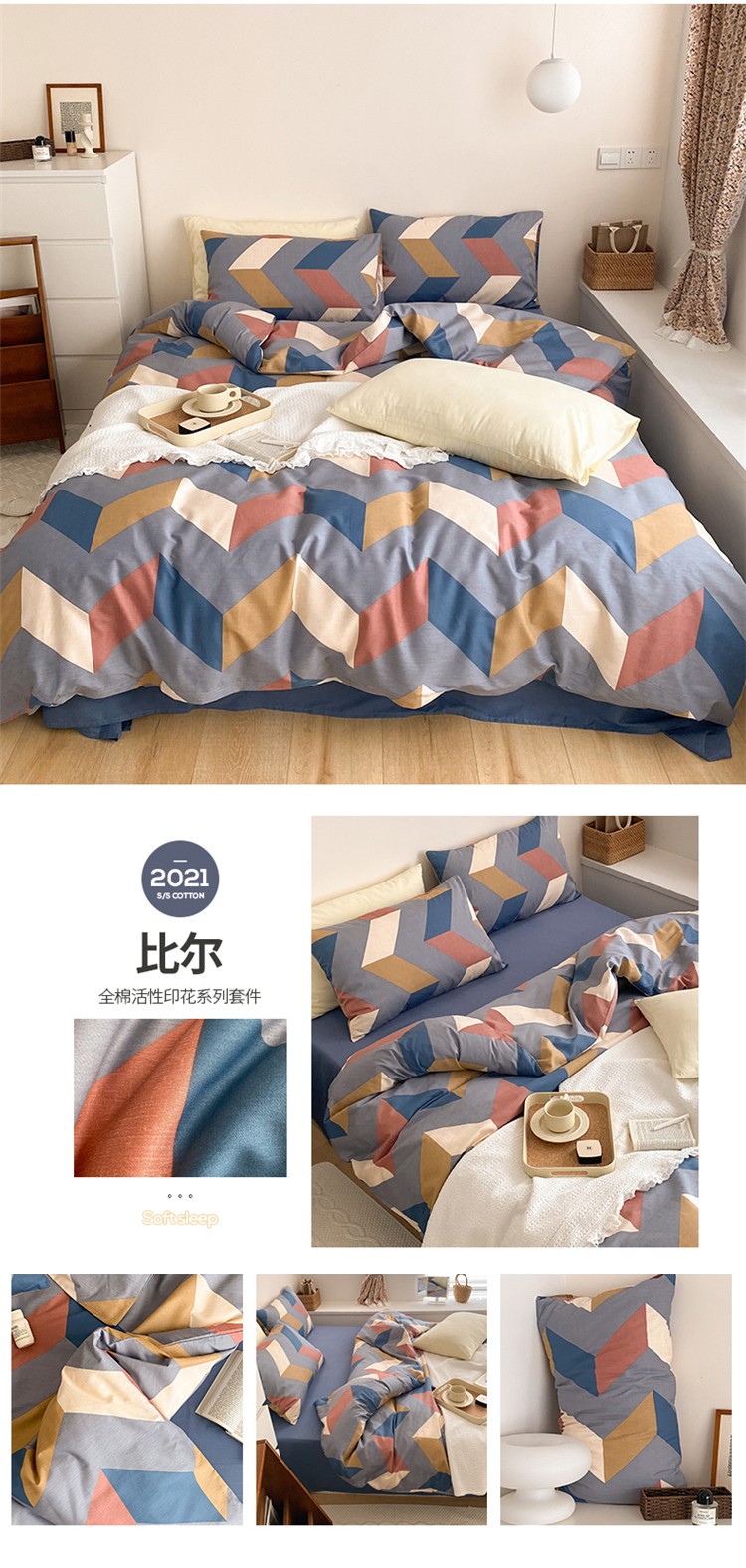 窝米 2021新款夏季新品13370全棉活性印花四件套 比尔