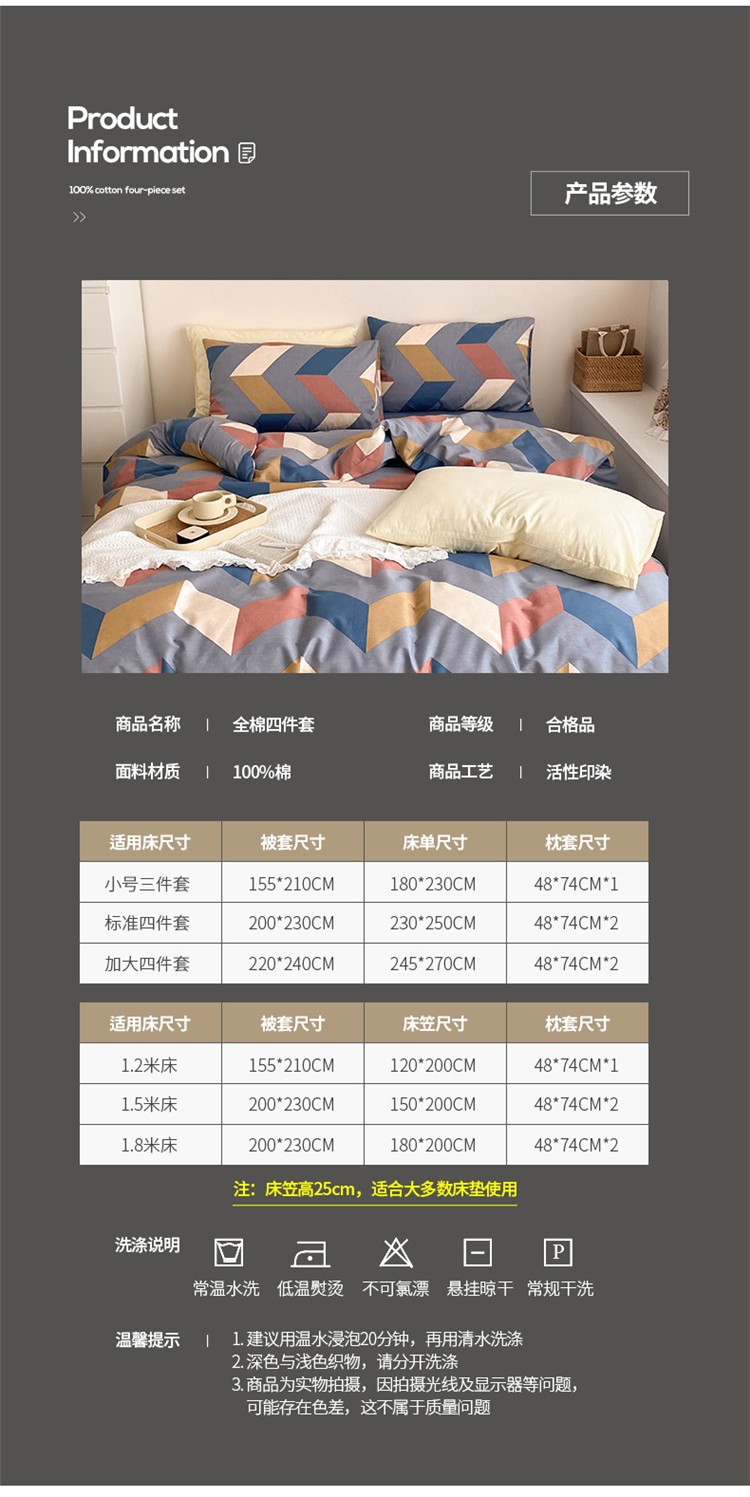 商品名称:窝米 2021新款夏季新品13370全棉活性印花四件套 比尔