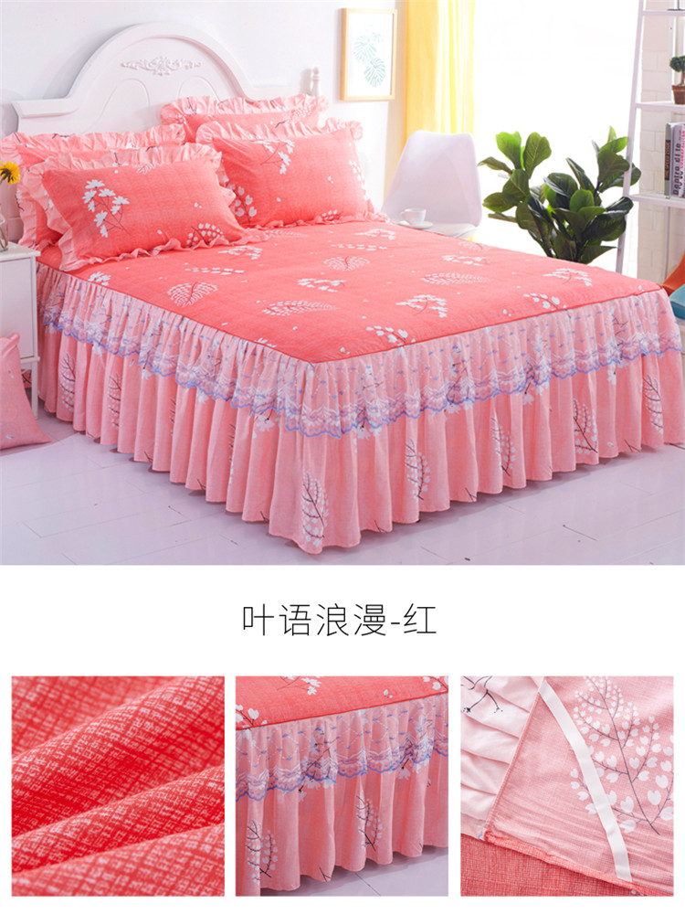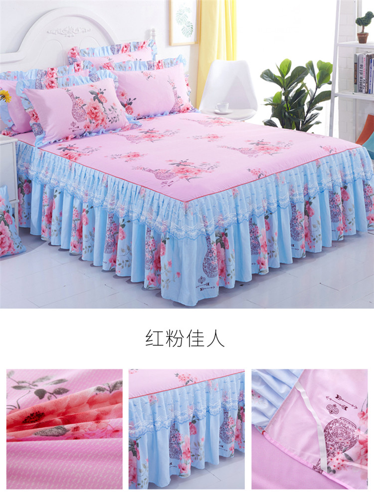(总)艾裙海 2025新款90克磨毛夹棉绗缝床裙,粉色,大红色,米白色,深灰色,紫色,藏青色,宝蓝色,浅灰色,粉玉色,豆沙红