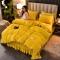 牵梦萦家纺纯色加厚牛奶绒法莱绒四件套秋冬季加绒床裙款 黄色